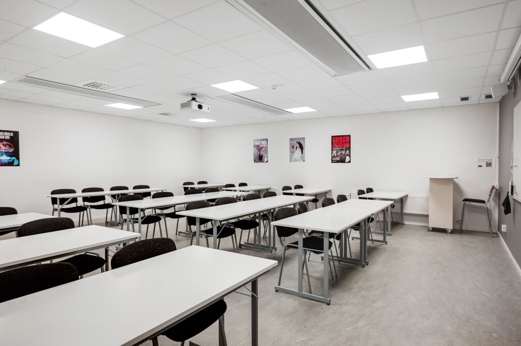 Välkommen till denna utbildningslokal som genomgick en ombyggnation 2018 och kan stoltsera med sitt fina och fräscha ytskikt!