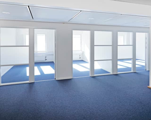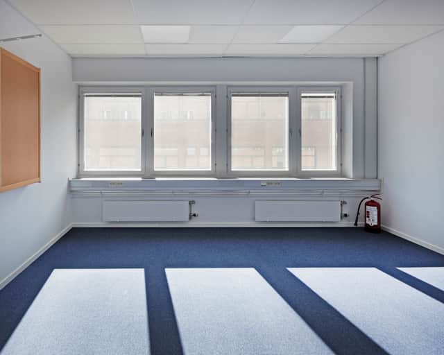 Ljusa och moderna lokaler med stora fönster och generös takhöjd
