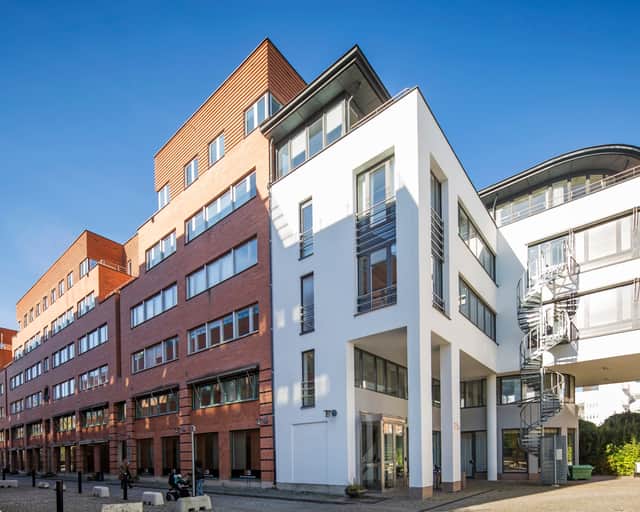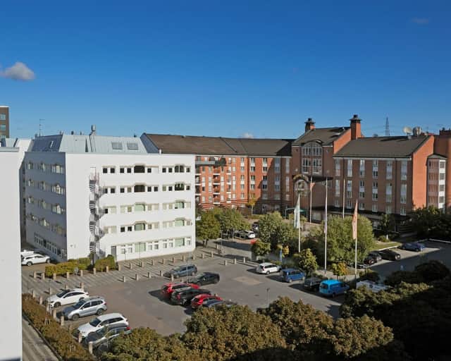 En fin och välskött kontorsfastighet med trevliga utemiljöer. Fastigheten är på ca 25 000 kvm. Parkering erbjuds i varmgarage eller utomhus.