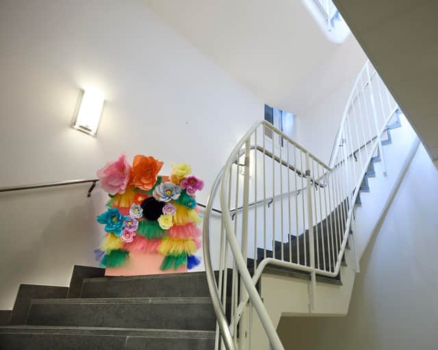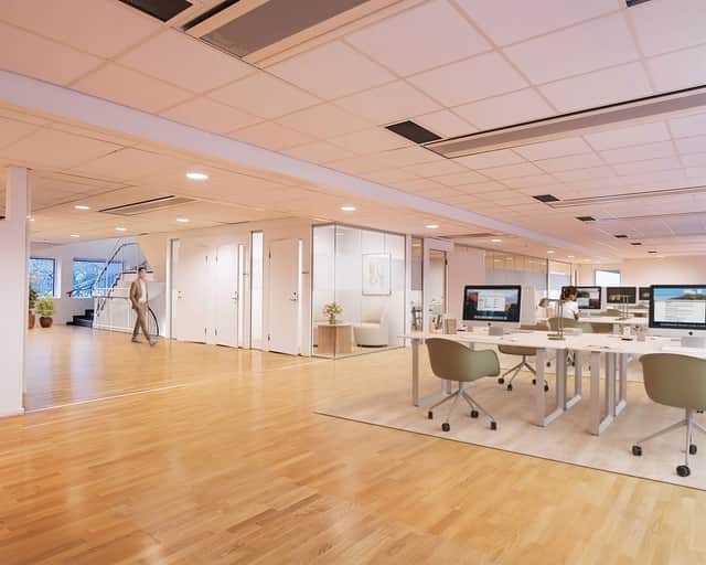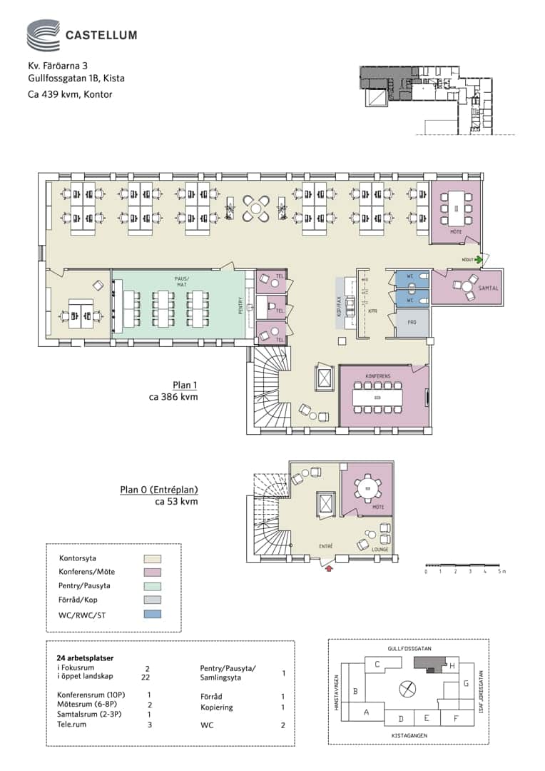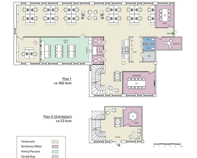 Fastigehten erbjuder gemensam reception och externa mötesytor i entréplan.