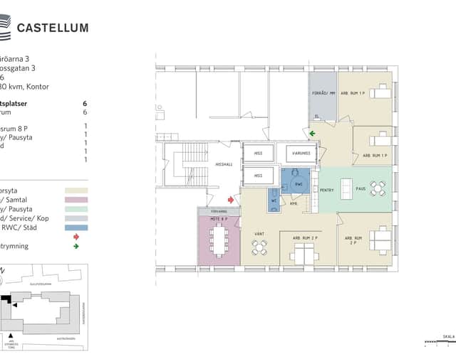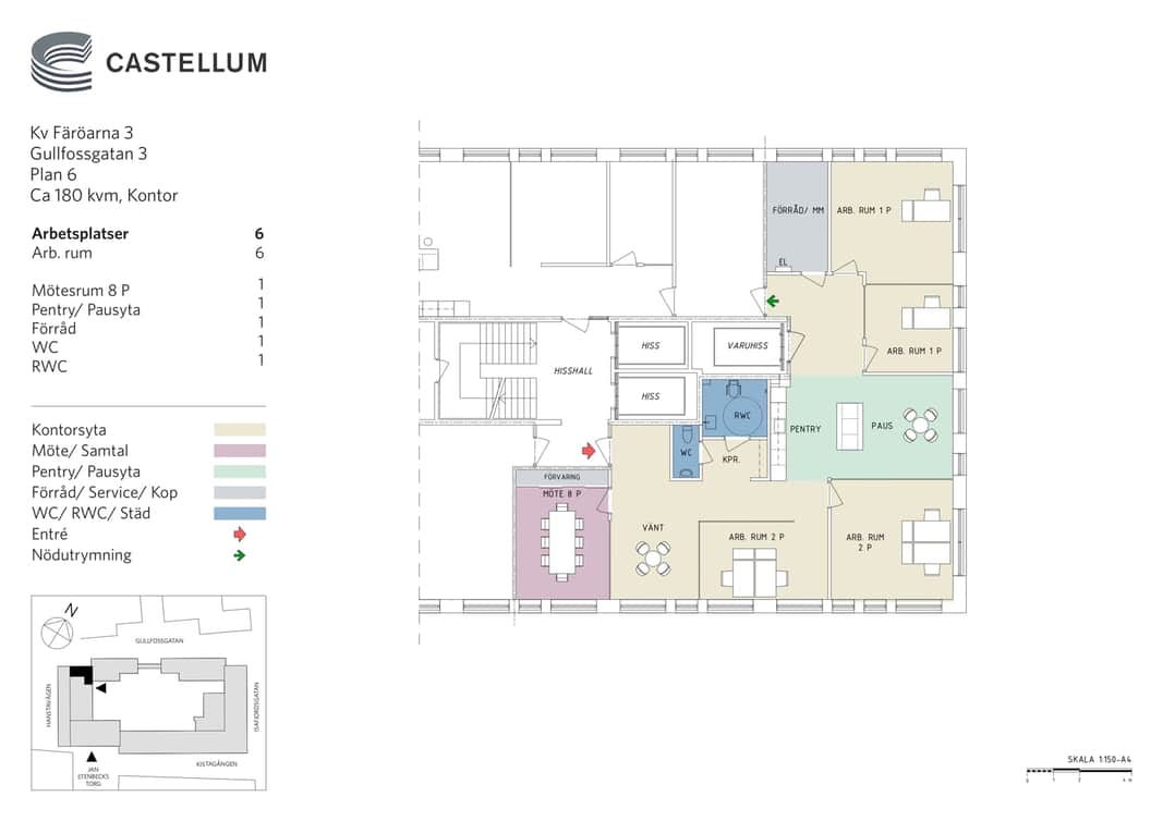 Smart och yteffektiv planlösning med en bra mix av arbetsrum och mötesrum. I köket skapas en naturlig och social samlingspunkt vid det trevliga barköket. Varuhiss med direkt access in i lokalen ger smidig logistik i vardagen.