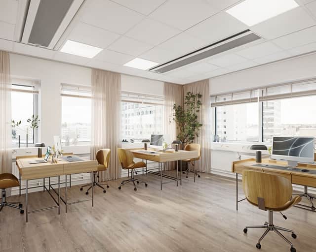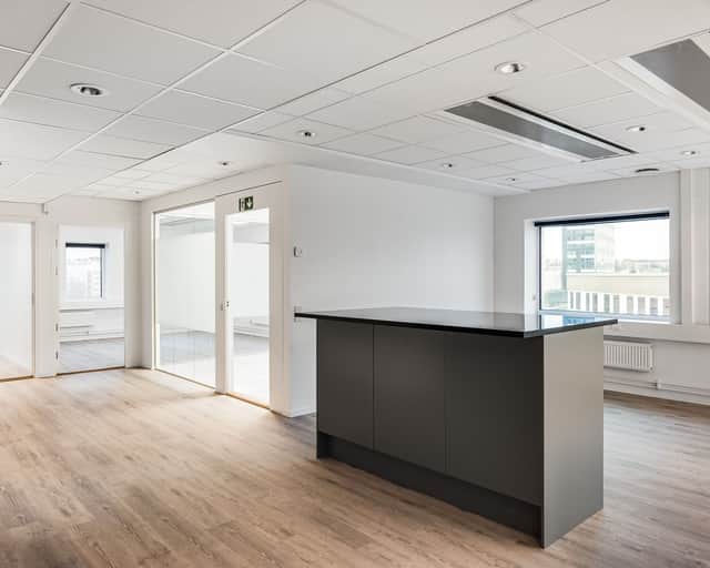 Välkommen till en modern och attraktiv kontorslokal om ca 180 kvm högt upp i huset med härlig utsikt. Här möts du av ett generöst ljusinsläpp från tre väderstreck och en öppen, flexibel planlösning som skapar både rymd och energi i arbetsdagen. De påkostade materialvalen bidrar till en exklusiv och inspirerande arbetsmiljö.