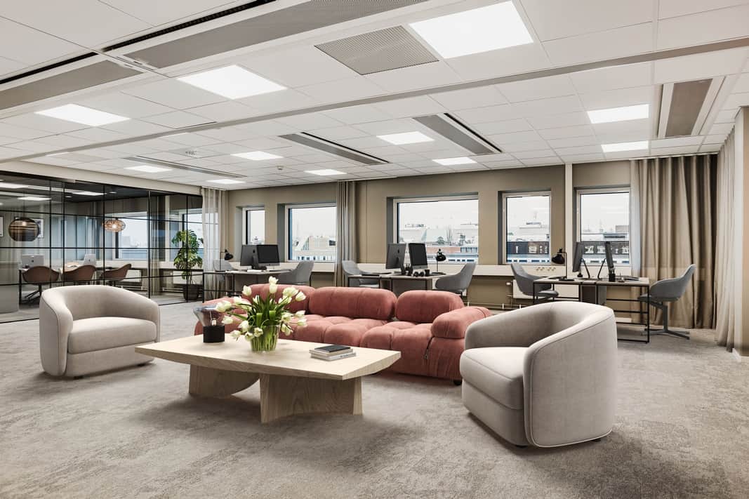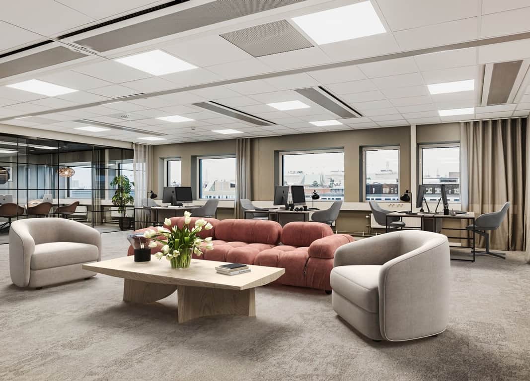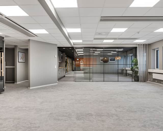 Optimal planerat kontor med öppet kontorlandskap och ett flertal mötesrum.