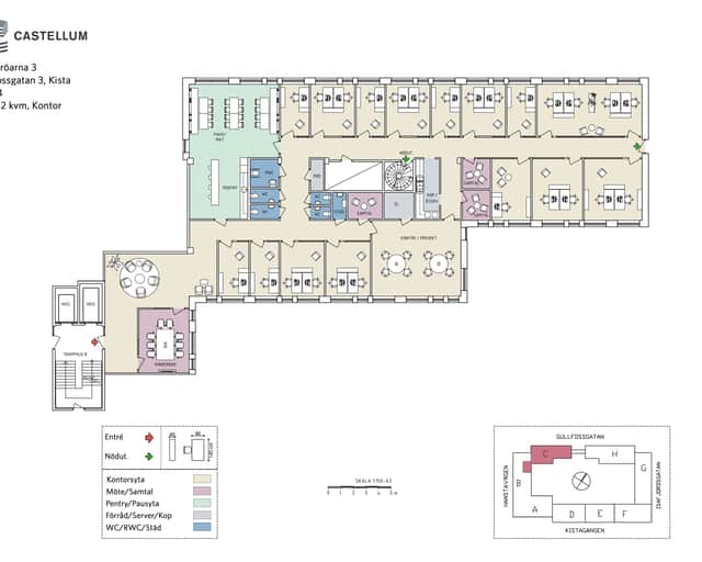 Välplanerad lokal med en mix av kontorsrum, mötesrum och öppna ytor som skapar en trivsam och effektiv arbetsmiljö.