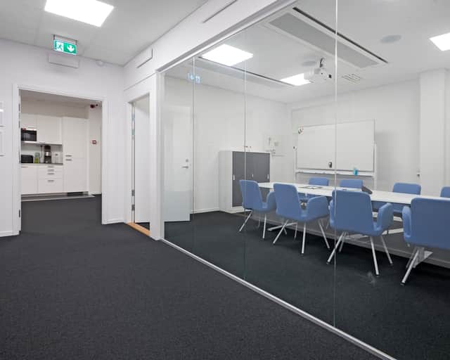 Lokalen erbjuder fräscha ytskikt och en modern planlösning som enkelt kan anpassas efter verksamhetens behov. Här får ni en ljus och trivsam arbetsmiljö med gott om naturligt ljusinsläpp.