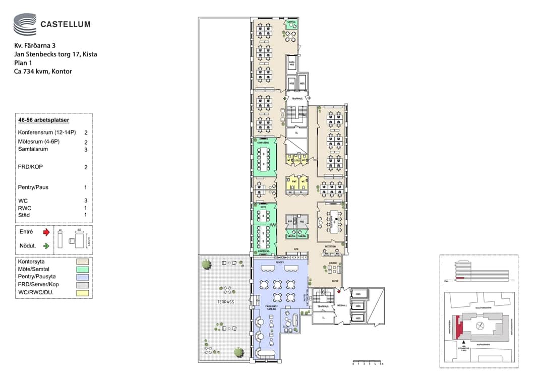 Lokalen är belägen i Kista One, en av Castellums mest attraktiva fastigheter. Här får ni ett strategiskt läge precis intill Kista Galleria, vilket innebär nära till all tänkbar service, restauranger, butiker och kommunikationer – enkelt för både medarbetare och besökare att ta sig hit.