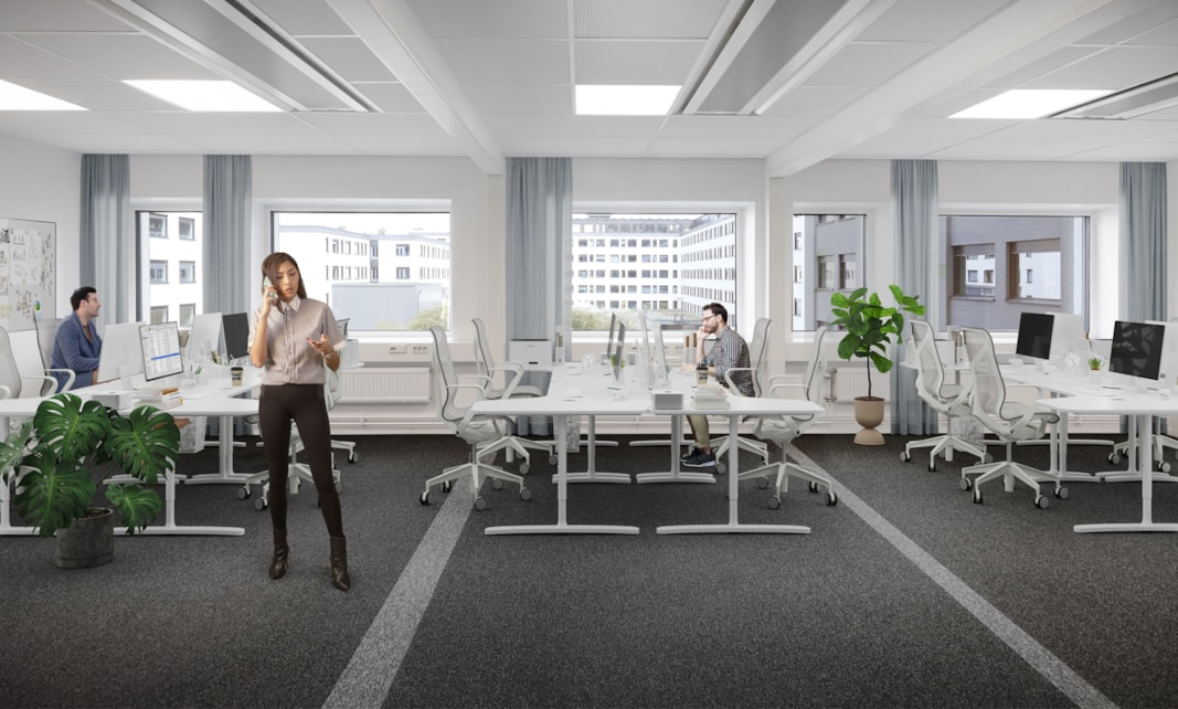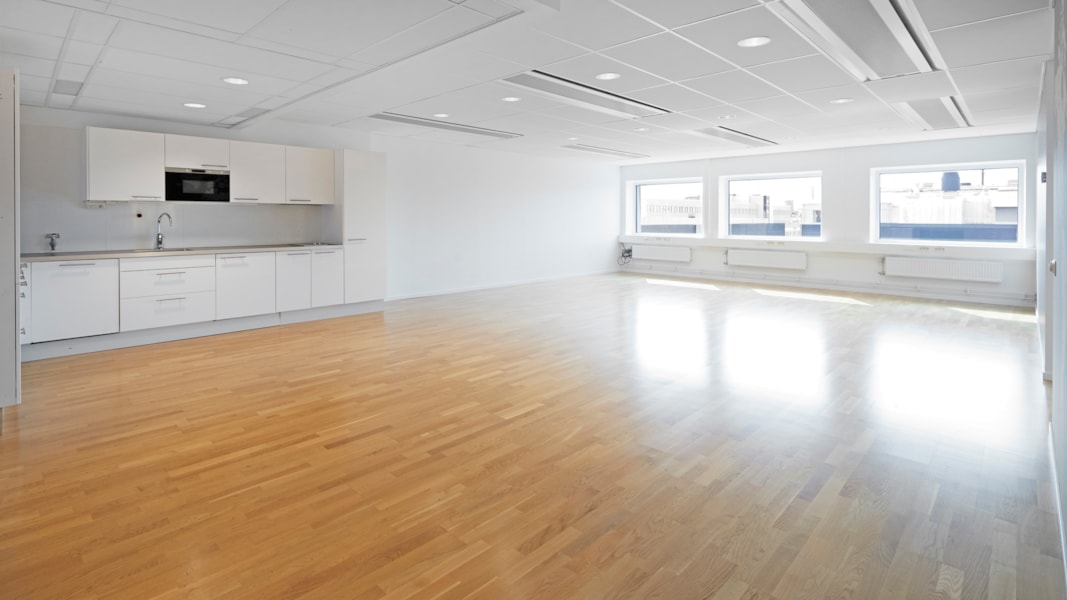 Lokalen erbjuder utsikt mot härlig innergård med ljusinsläpp från två väderstreck vilket skapar en ljus och trevlig arbetsmiljö.