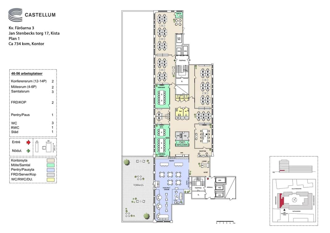 Optimalt planerad lokal med terrass, stora öppna kontorslandskap, kontorsrum och ett flertal konferensrum.