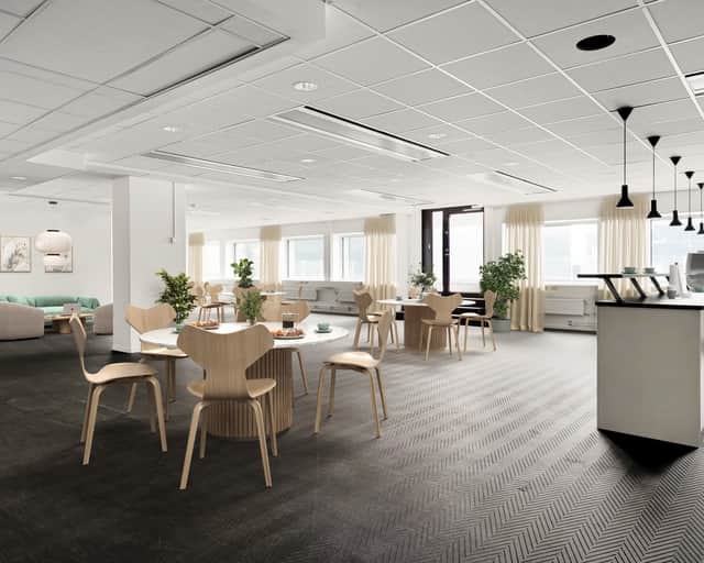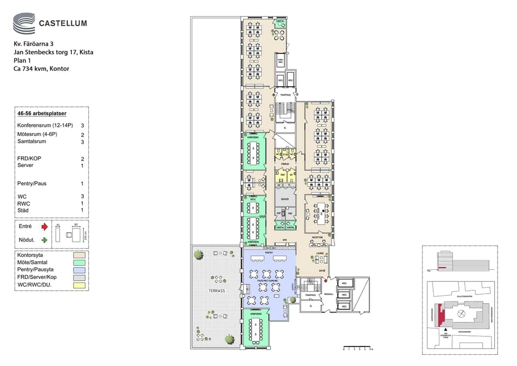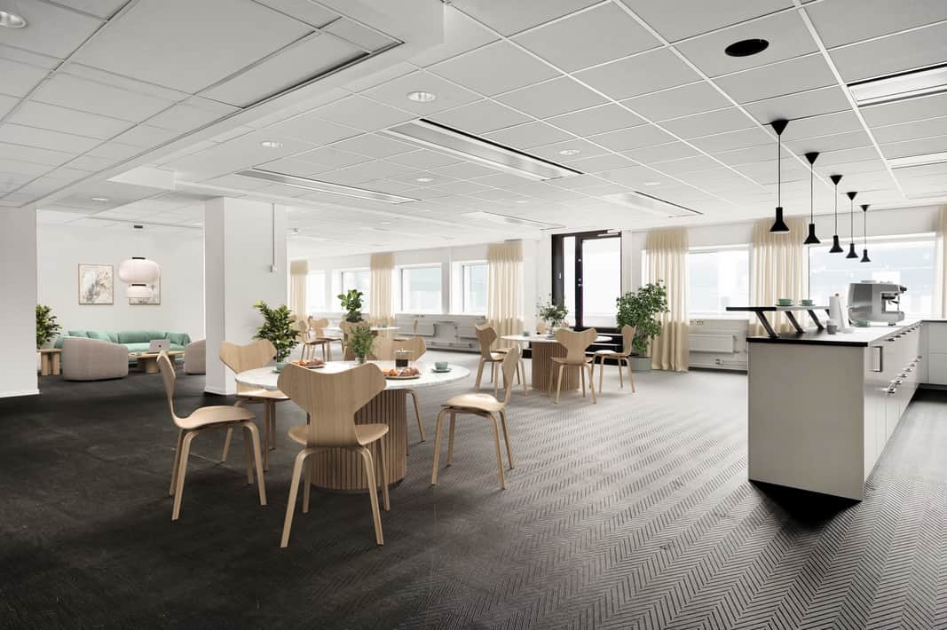 Optimalt planerad lokal med terrass, stora öppna kontorslandskap, kontorsrum och ett flertal konferensrum.