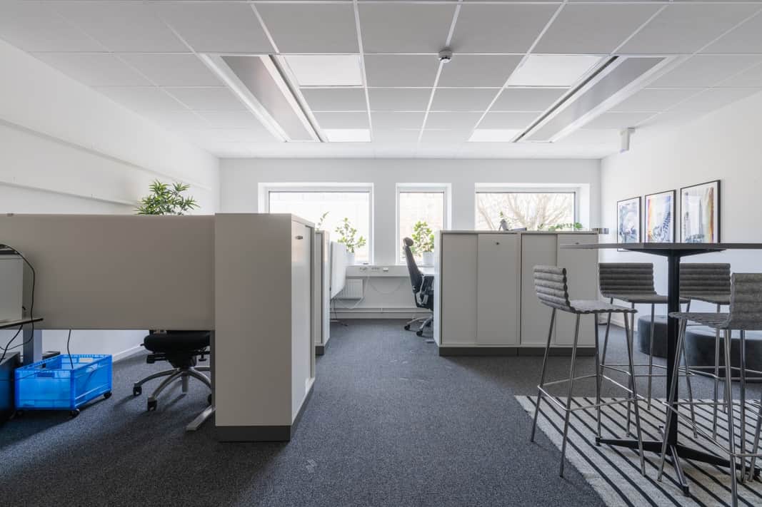 Lokalen erbjuder en flexibel planlösning med öppen arbetsyta, kombinerat med mötesrum och fokusrum. Genomtänkta ytskikt och ett fint ljusinsläpp skapar en trivsam arbetsmiljö där det är lätt att både samarbeta och arbeta ostört.
