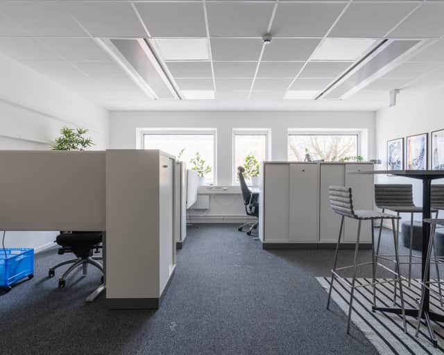 Lokalen erbjuder en öppen arbetsyta som skapar puls och gemenskap, kombinerat med mötesrum och fokusrum.