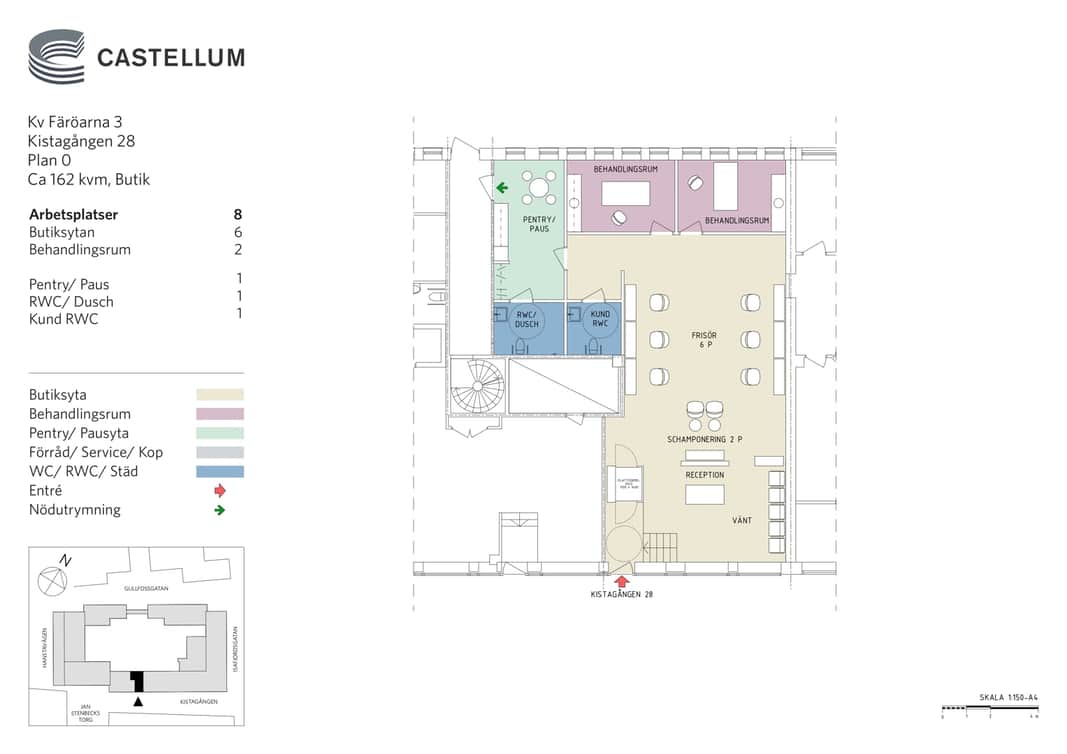 Lokalen är optimalt utformad för frisör- och skönhetssalong. I den främre delen av lokalen, mot Kistagången, erhåller ni en öppen härlig verksamhetsyta, med en generös tilltagen takhöjd. I lokalens bakre del finns två behandlingsrum som är 10-12 kvm per rum.