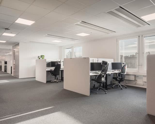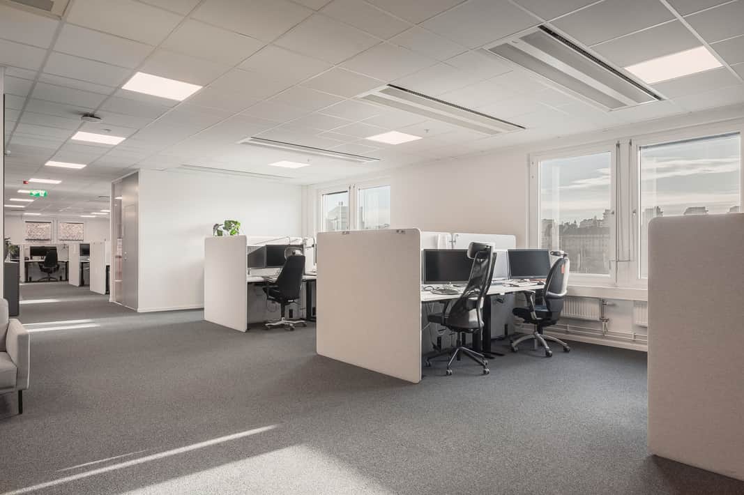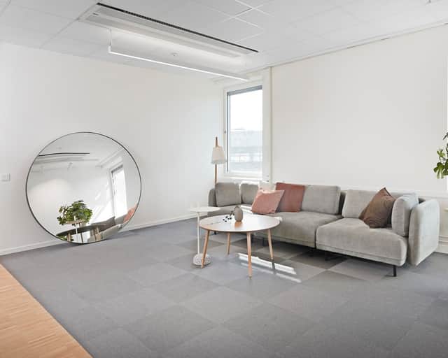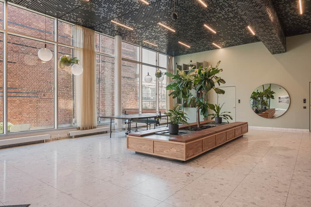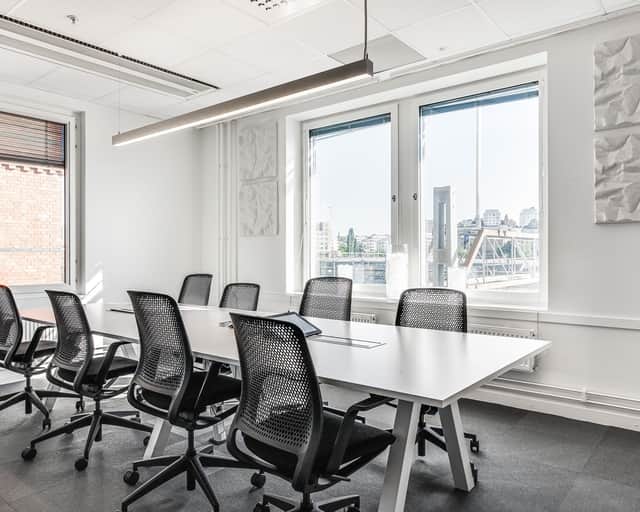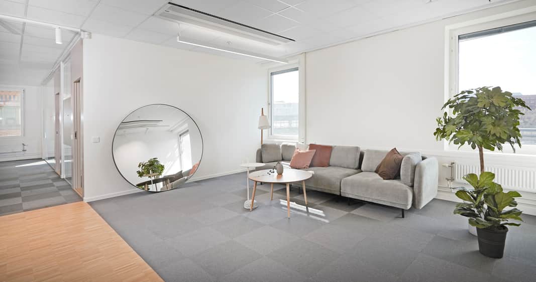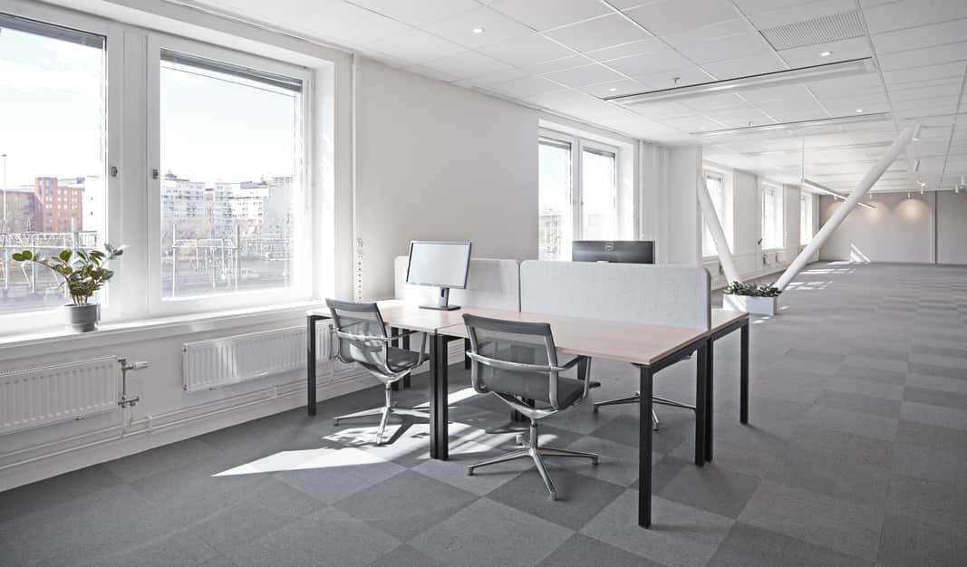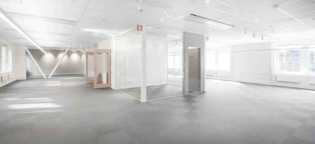 Modern planlösning med plats för kontorslandskap, mötesrum och ytor för loungehäng - allt ni kan tänkas behöva