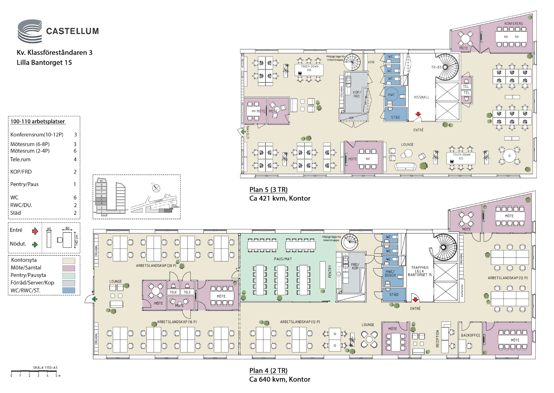Lokalen ligger fördelad på två våningsplan 2 & 3 tr. Här erbjuds en fantastisk utsikt över Karlbergskanalen och Kungsholmsstrand, vilket ger en inspirerande arbetsmiljö.
