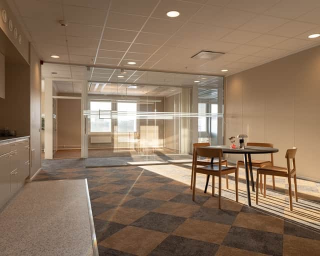 Modern planlösning med plats för kontorslandskap, mötesrum och ytor för loungehäng - allt ni kan tänkas behöva i kombination med mycket ljusinssläpp och fin utsikt.