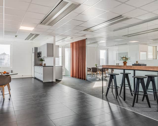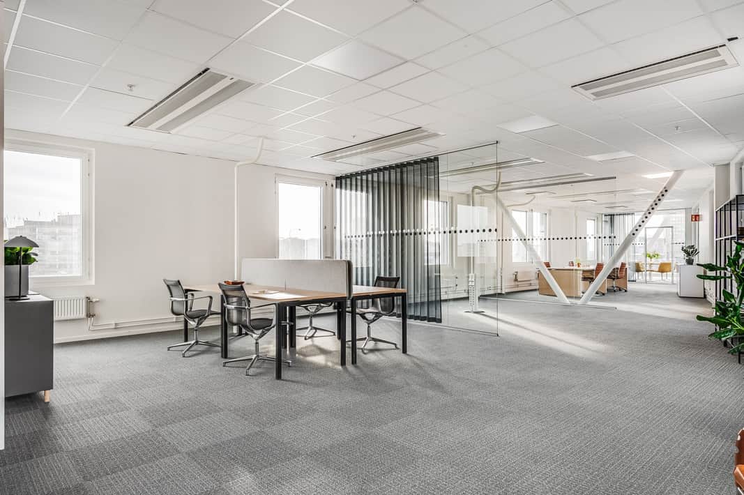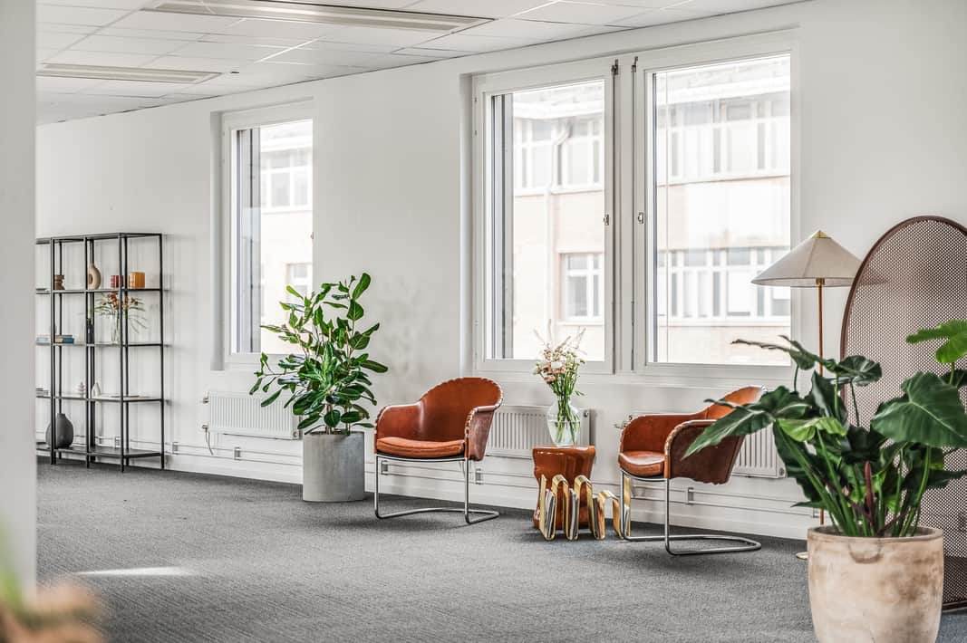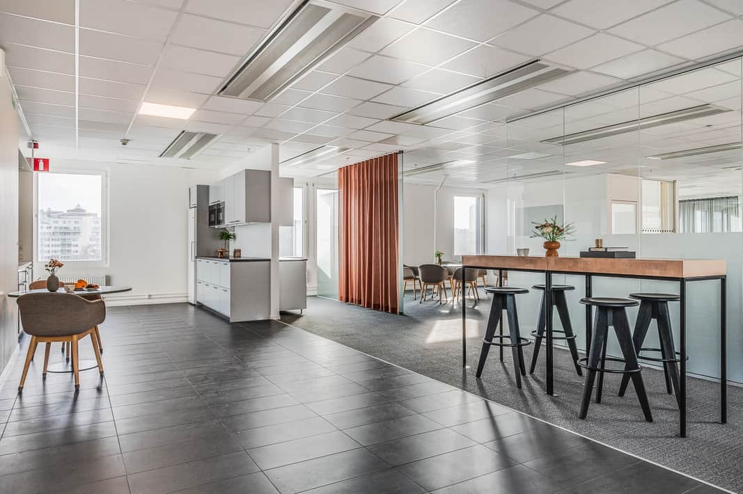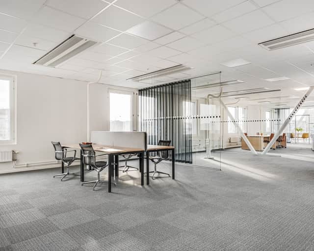 Här får ni som hyresgäst ett flexibelt kontor med fönster i alla fyra väderstrecken vilket ger ett härligt ljusinsläpp.