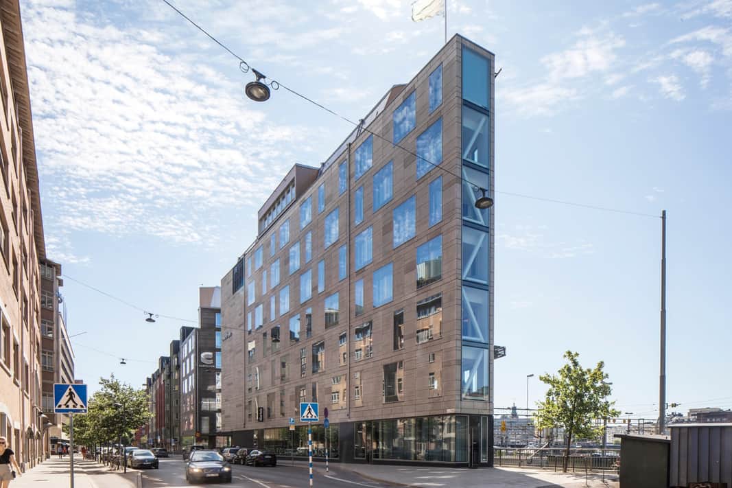 Fastigheten består av två byggnader som båda uppfördes 2008 och består av 8 våningsplan med flexibla och moderna kontor. Här får ni som hyresgäst en härlig utsikt över Karlbergskanalen mot Kungsholmen och City. Den ena byggnaden, känd som Flat Iron Building, är ett av Stockholms mest spektakulära landmärken och påminner om det berömda huset i New York som kännetecknas av sina djärva vinklar och exklusiva materialval. Den åtta våningar höga byggnaden utstrålar ett starkt och modernt uttryck som gör den till ett iögonfallande inslag i Stockholms innerstad. I fastigheten huserar Panini som serverar lättare lunch och gofika.