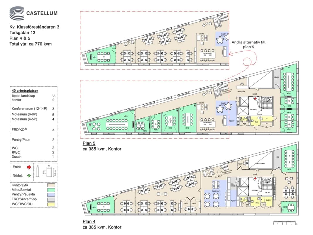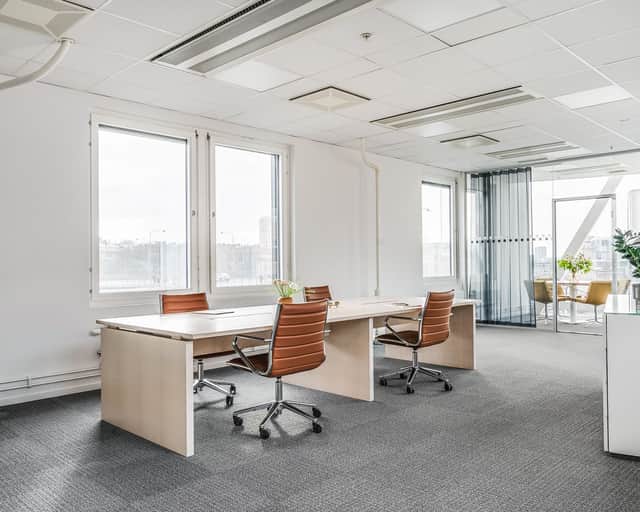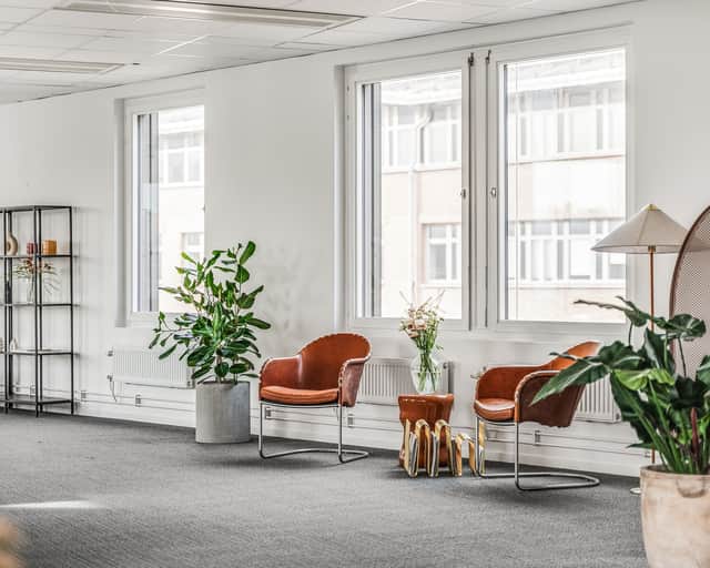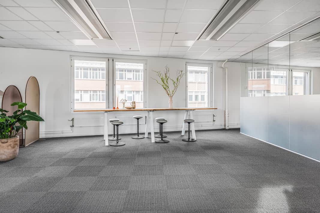 Modern planlösning med plats för kontorslandskap, mötesrum och ytor för loungehäng - allt ni kan tänkas behöva
