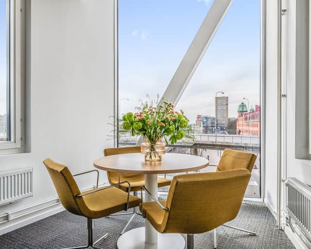 Med stora fönster och en vidsträckt utsikt över Karlbergskanalen får du en ljus och inspirerande arbetsmiljö.