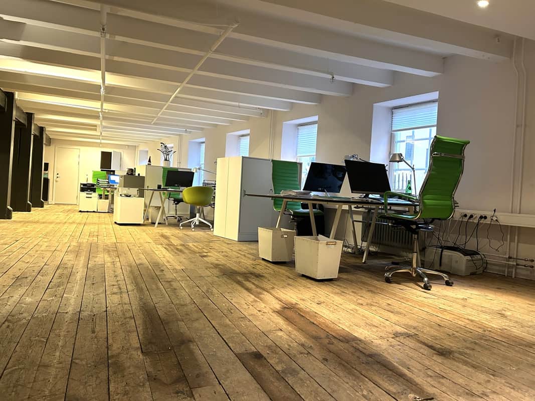 Lokalen med vackra fönster, där trägolven erbjuder sin egen historia och öppen planlösning gör det möjligt att möblera kreativt där bara fantasin sätter gränser.