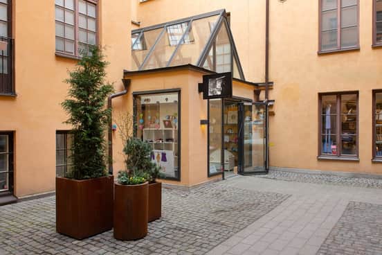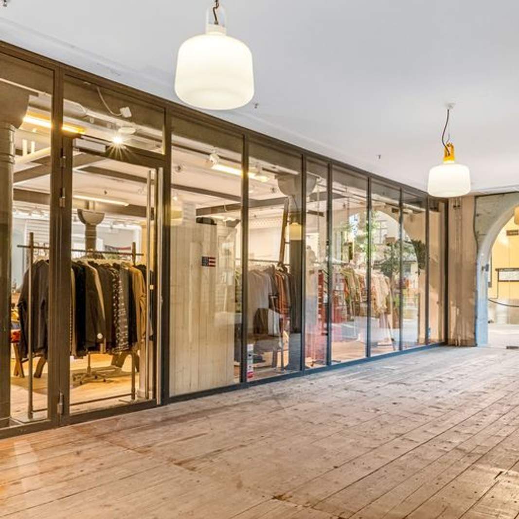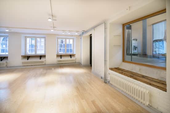 Lokal i ett plan med stora glasytor ut mot gångstråk.