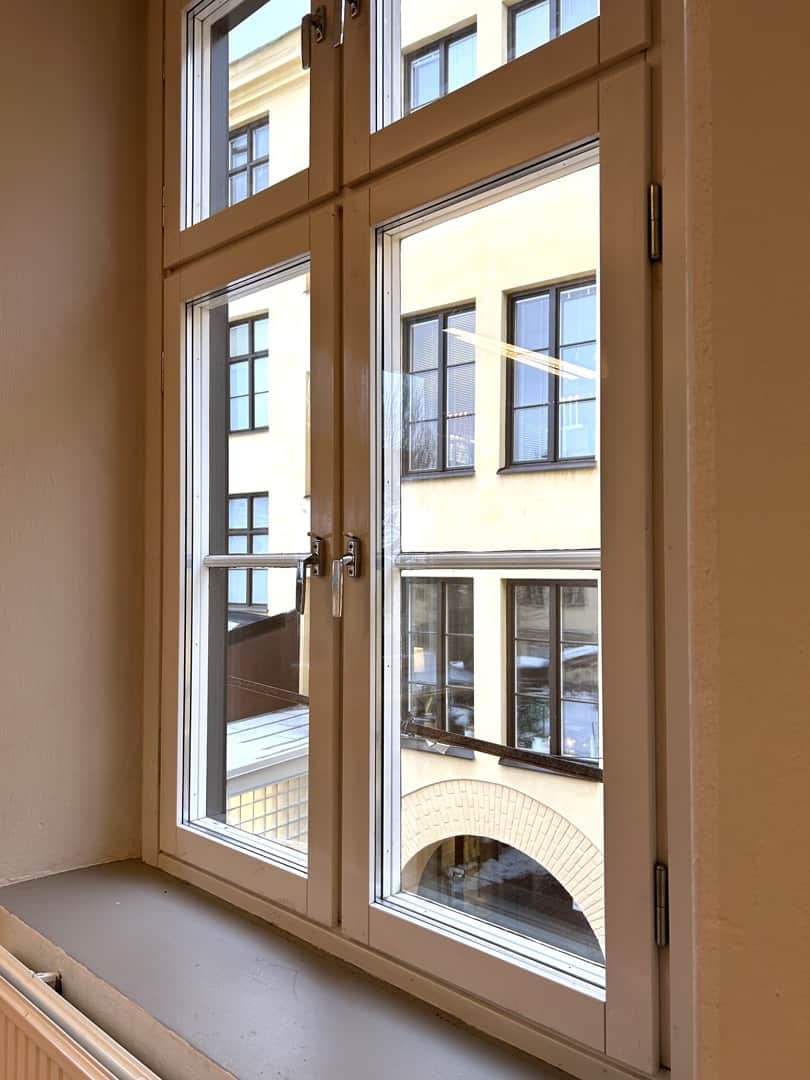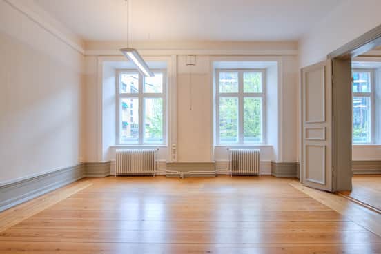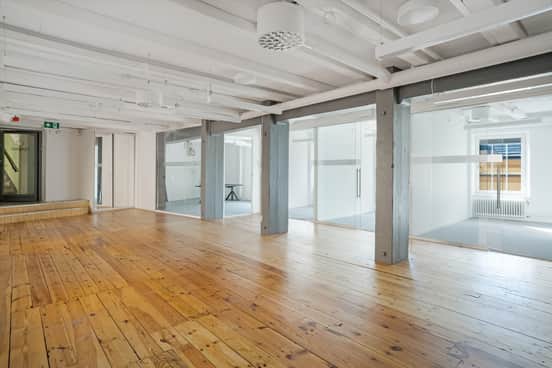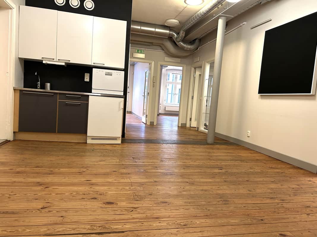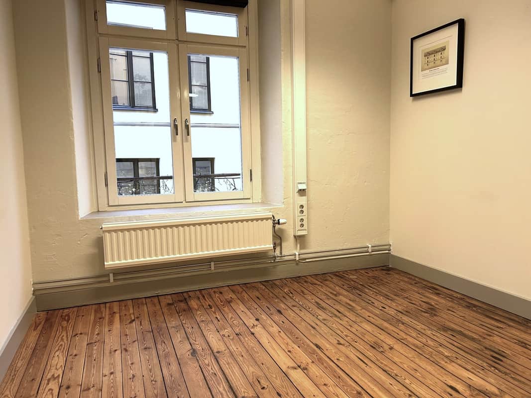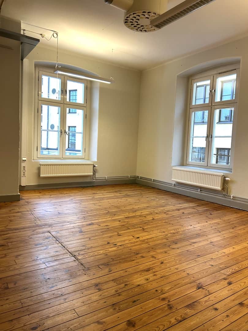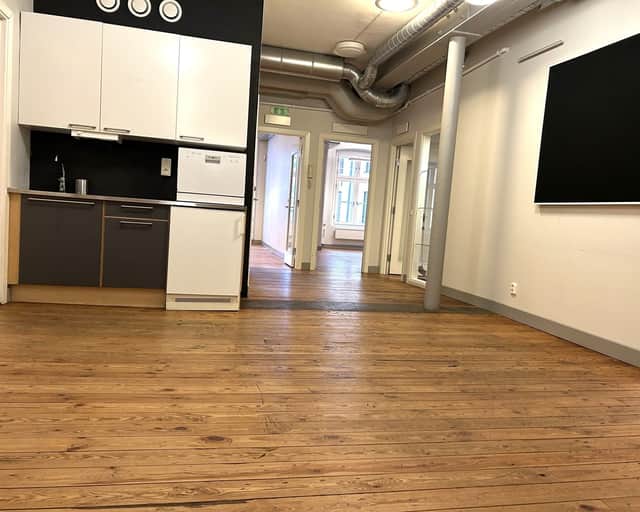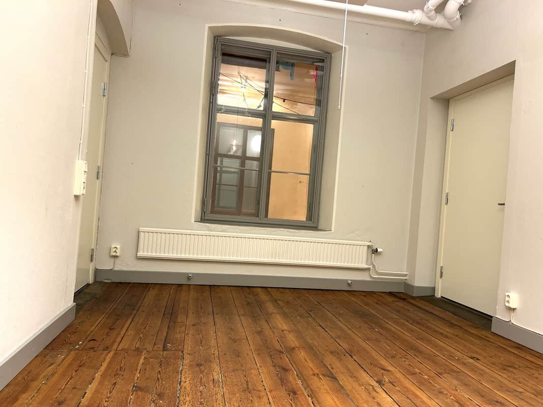 En fin hörnlokal med genuina trägolv, generösa fönster med en med rum där man kan arbeta enskilt eller i grupp. En härlig ljusgård vetter mot ena hållet och det andra hållet med utsikt över restaurangtorget i Knäppingsborg.