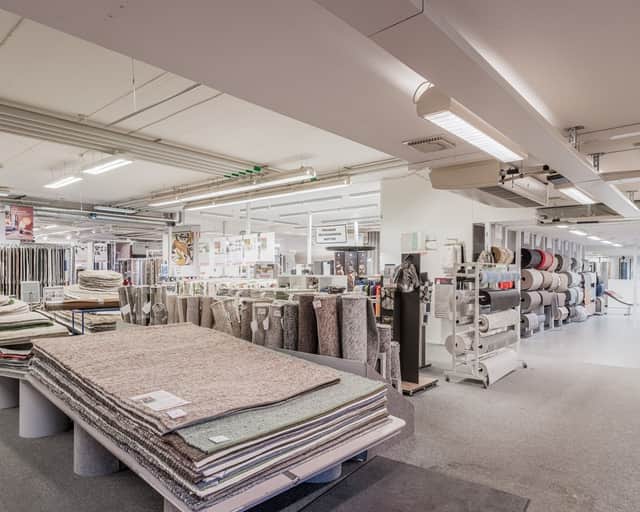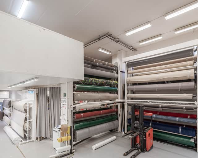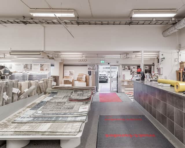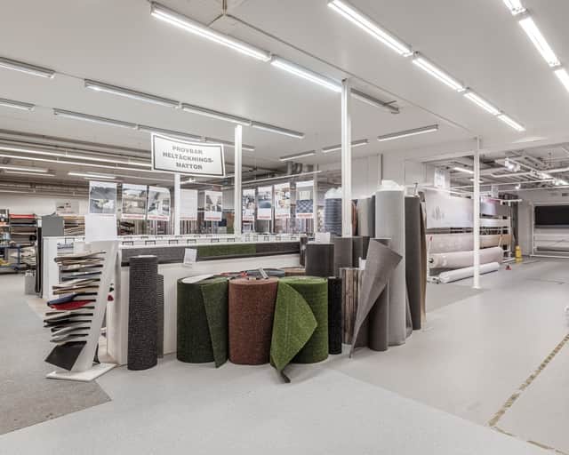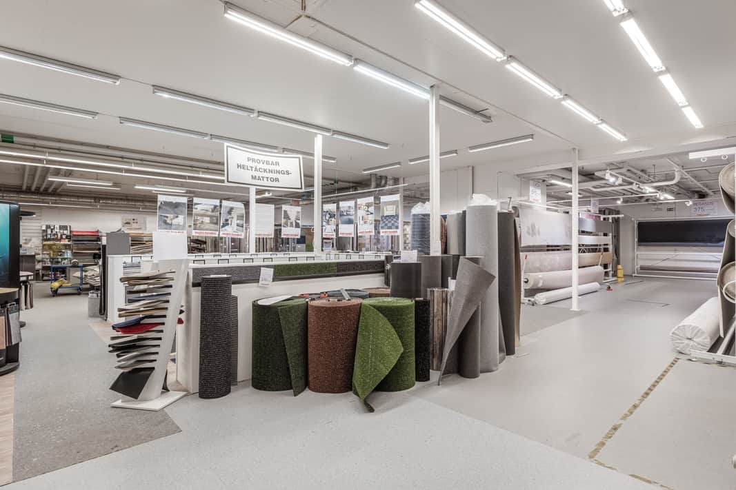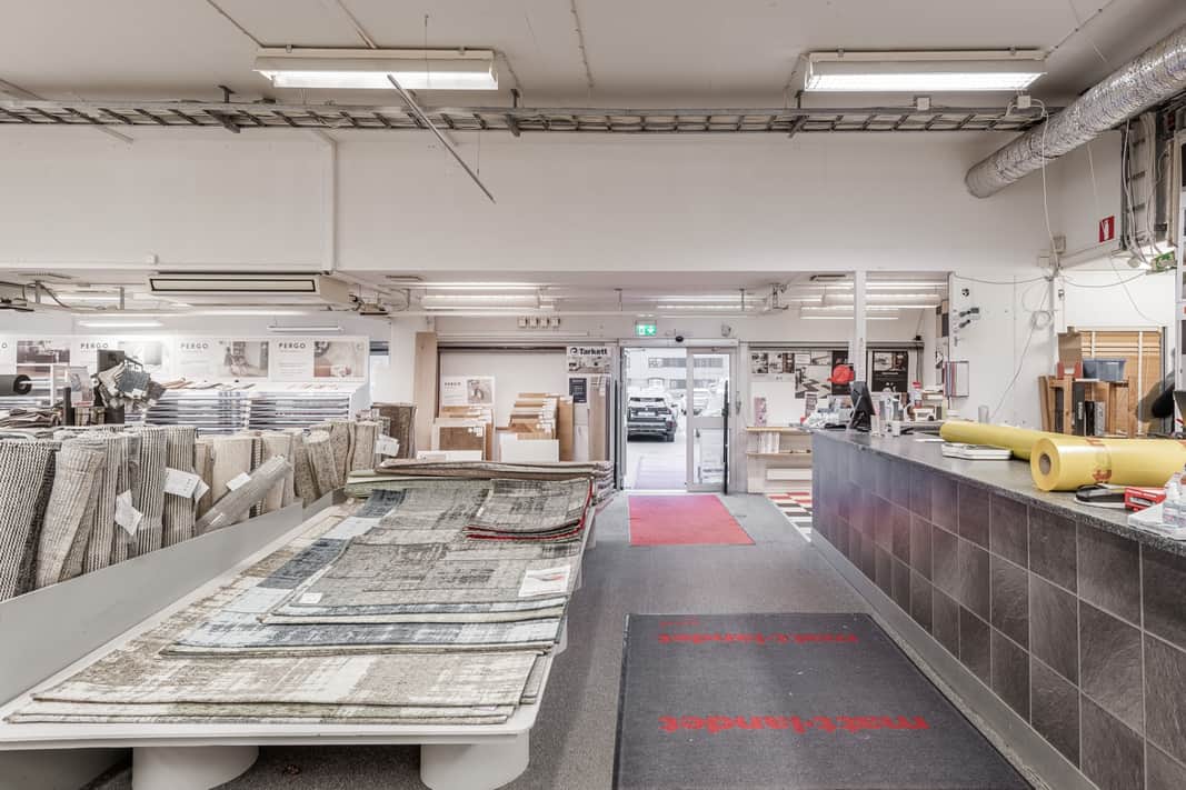 Generösa öppna ytor med högt i tak skapar goda förutsättning för butik, showroom eller kombinerad butik- och lagerverksamhet.