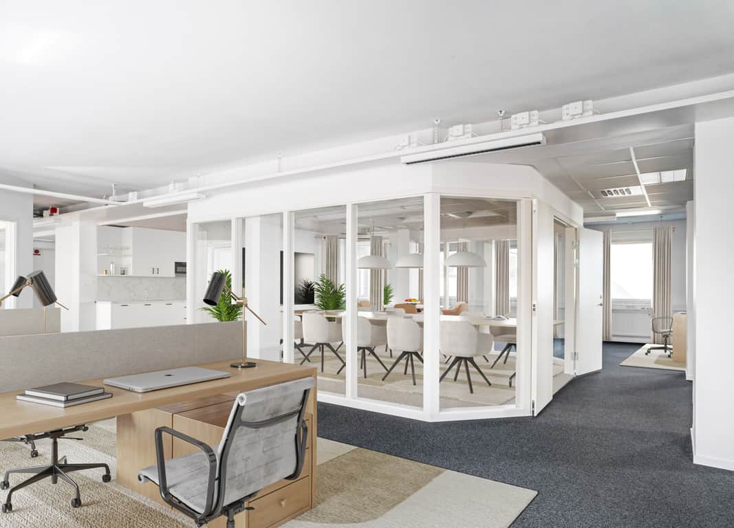 Trivsamma och öppna ytor med ett fåtal rum. Bra konferenslösningar. Ljus och elegant lokal med moderna ytskikt.
