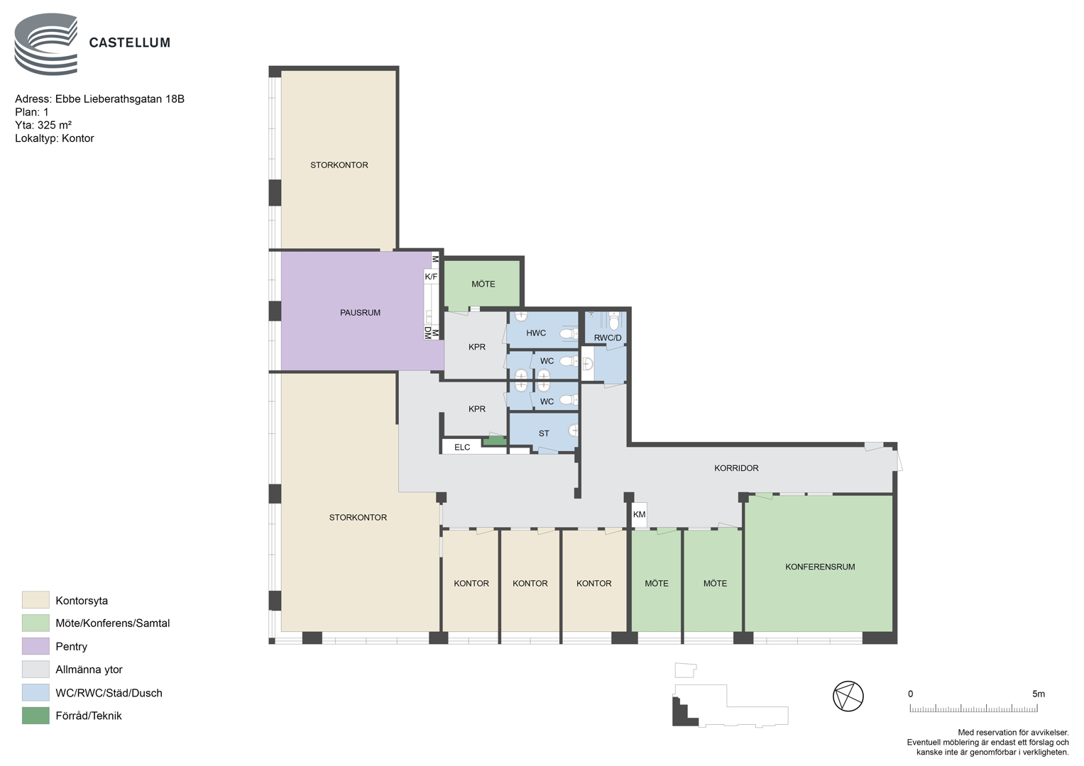 Blandad planlösning med kontor och öppna ytor samt gemensamhetsytor. Anpassningar går göra utifrån era behov och önskemål.
