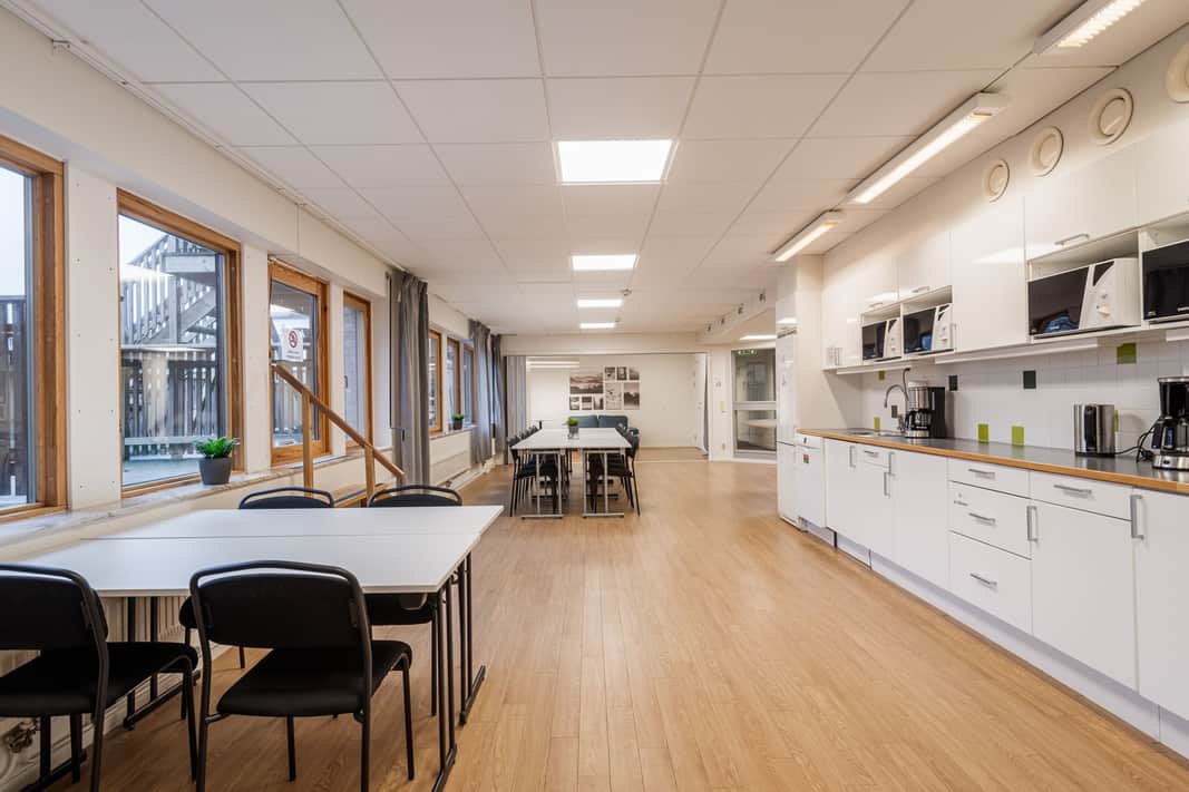 Ett modernt och fräscht kontor högst upp i huset med utsikt över takåsarna! Behaglig och smakfull färgsättning som tilltalar de flesta. Inbjudande kök och pausrum med utgång till den egna rymliga terrassen där man kan äta lunch eller njuta av en kaffestund. I denna arbetsmiljön kommer medarbetare att trivas. Lokalen består i dag av enskilda kontorsrum men anpassning av planlösningen kan göras för att matcha era behov och önskemål för den optimala lokalen. Vid anpassningar försöker vi alltid ha återbruk och hållbarhet i åtanke.