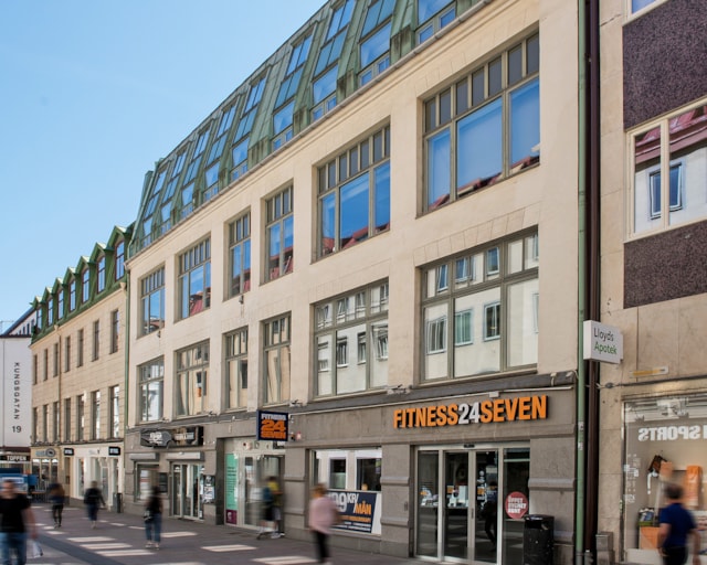 Högst upp på Kungsgatan 15 hittar du en ljus och trevlig kontorslokal med direkt access till stadens puls.