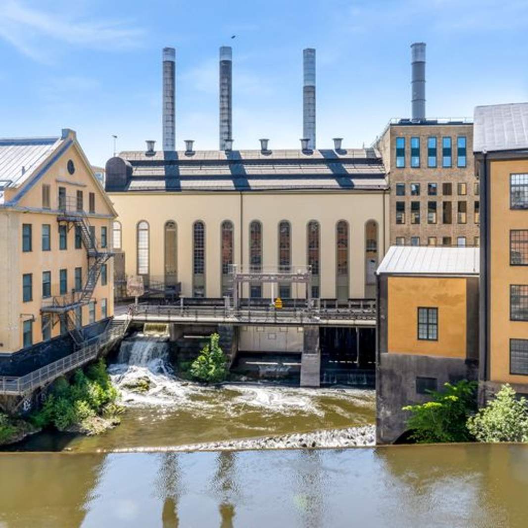 I hjärtat av industrilandskapet finner du denna unika kontorsfastighet. Här blir du granne med vattenfallet, universitetet, konsert- och kongresslokaler.