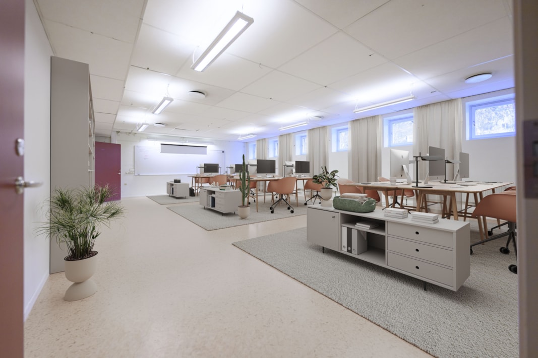 Kontor/ utbildningslokal i markplan. Lokalen består av både kontor och utbildningslokaler i form av lärosalar, lokalen är även möjlig att dela av till två separata lokaler. Egen parkering finns i anslutning till fastigheten. Tillgång till gemensamt omkl.rum med tillhörande bastu. Byggnaden ligger inom 1 minuts avstånd till centrala Östersund med tillgång till butiker och restauranger.