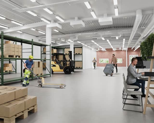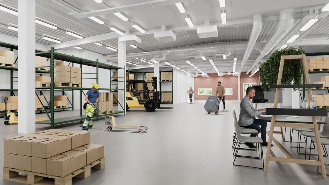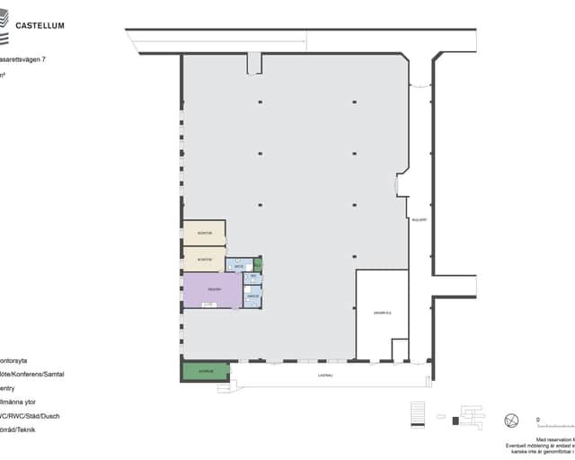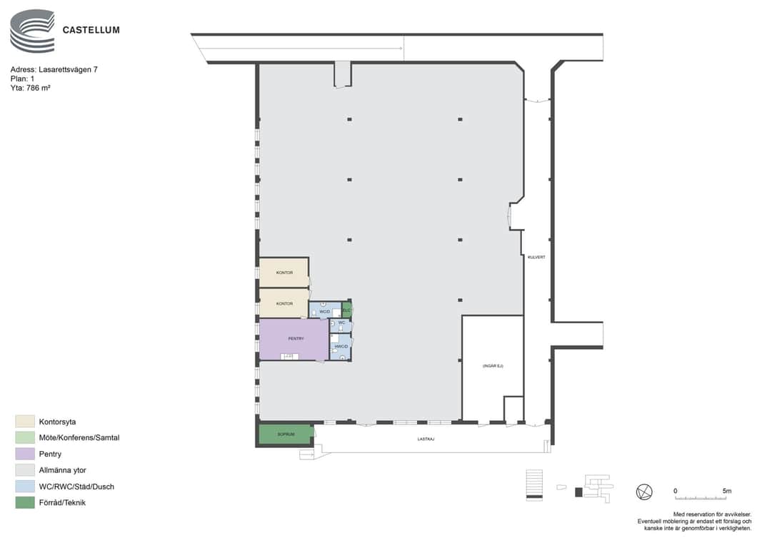 Här finns ett stor lager med hög takhöjd och lastkaj tillgängligt för ert företag. Lokalen kan anpassas efter hyresgästens behov och önskemål. Kontorsytan är i behov av renovering och storleken kan ändras för att matcha era krav. Vid anpassningar försöker vi alltid ha hållbarhet och återbruk i åtanke,