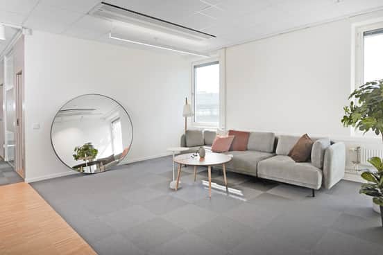 Våningsplanen i denna fastighet varierar i storlek, från ca 650 upp till 1 300 kvm per våningsplan och går enkelt att sammanlänka. Detta är ett förslag på ett och ett halvt plan. Lokalerna blir nyrenoverade, med varsamt utvalda premiummaterial. Det blir en väl vald mix av nytt och återbrukat från lokalernas tidigare hyresgäst. Synliga installationer ger rymd och en rå, urban känsla som passar det moderna kontoret. Välj mellan två olika inredningskoncept för ditt kontor; Sober, som är lite lugnare och har en exklusiv känsla med mjuka mattor och färgtoner, eller Studio som är mer uttrycksfullt, med betonggolv, klinker och lite modigare färger. Oavsett val kommer alla fönster och burspråk att återställas till sin ursprungliga storlek, vilket släpper in mer ljus och öppnar upp rummen. Resultatet: ljusa, luftiga kontor med stora möjligheter att anpassa efter behov