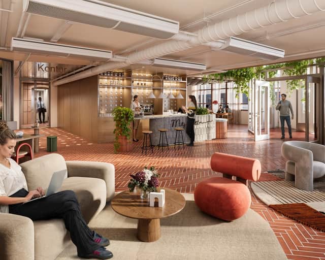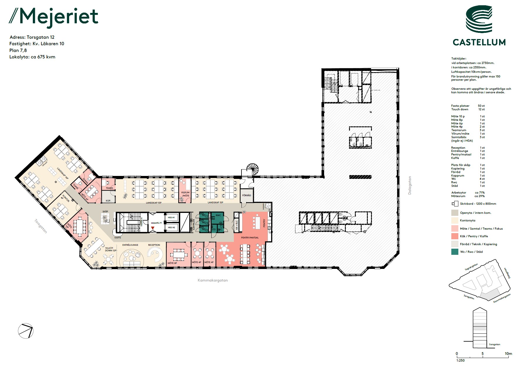 Våningsplanen i denna fastighet varierar i storlek, från ca 650 upp till 1 300 kvm per våningsplan och går enkelt att sammanlänka. Detta är ett förslag på ett och ett halvt plan. Lokalerna blir nyrenoverade, med varsamt utvalda premiummaterial. Det blir en väl vald mix av nytt och återbrukat från lokalernas tidigare hyresgäst. Synliga installationer ger rymd och en rå, urban känsla som passar det moderna kontoret. Välj mellan två olika inredningskoncept för ditt kontor; Sober, som är lite lugnare och har en exklusiv känsla med mjuka mattor och färgtoner, eller Studio som är mer uttrycksfullt, med betonggolv, klinker och lite modigare färger. Oavsett val kommer alla fönster och burspråk att återställas till sin ursprungliga storlek, vilket släpper in mer ljus och öppnar upp rummen. Resultatet: ljusa, luftiga kontor med stora möjligheter att anpassa efter behov