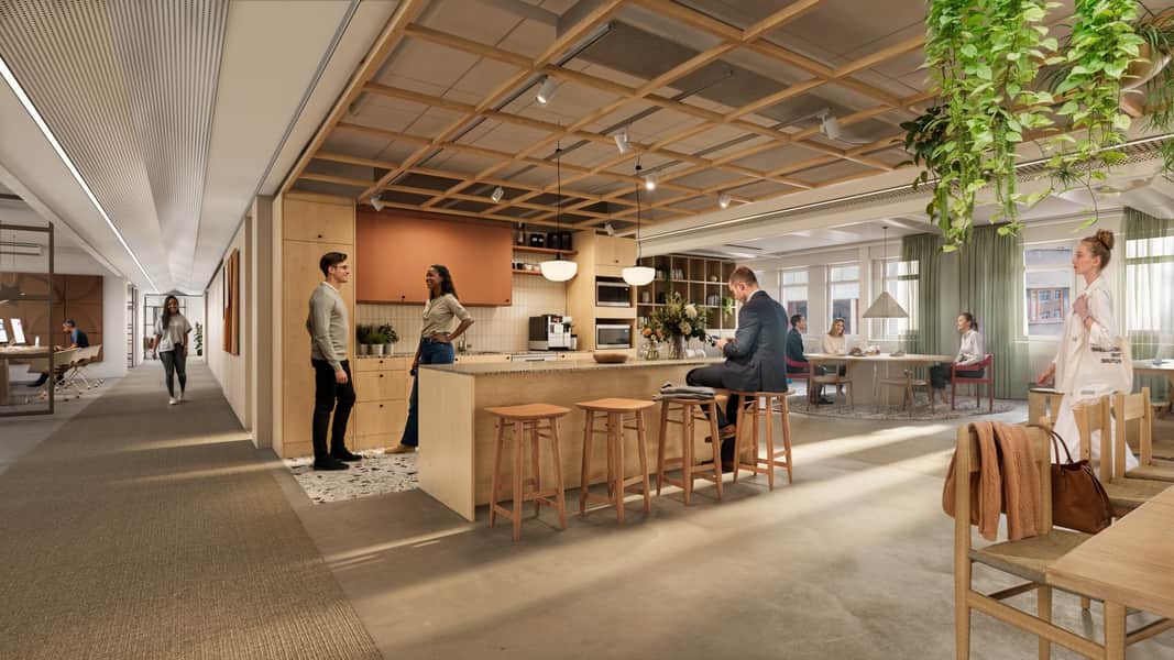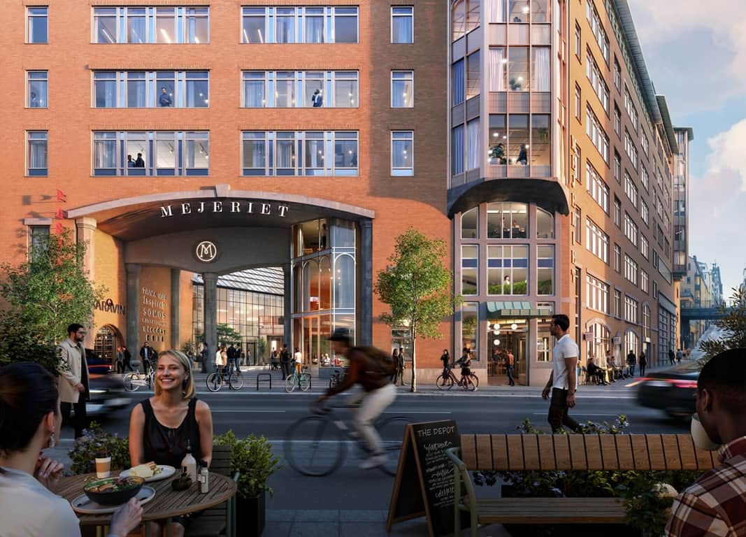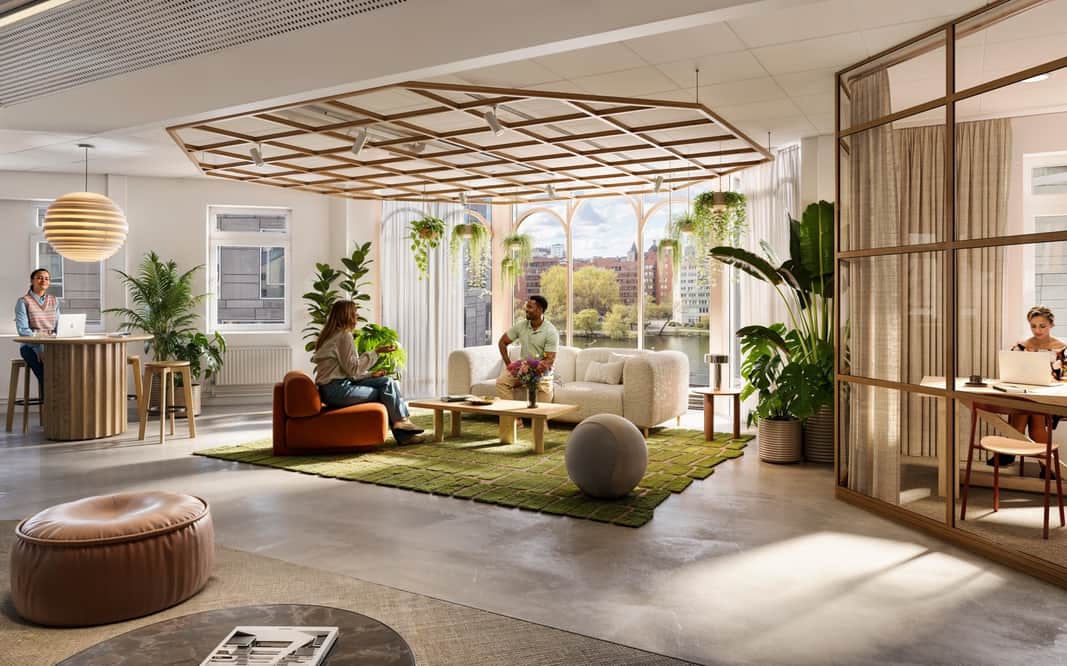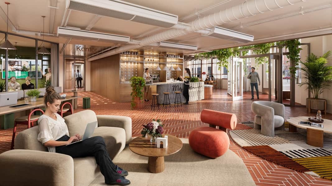 Här leder huvudentrén dig direkt från gatan in till husets gemensamma lobby, servicedesk och restaurang. Där serveras allt från nybryggt kaffe och frukost till lättare luncher och affärsluncher. En separat konferensavdelning och rymlig eventyta gör det enkelt att ordna egna möten eller evenemang. Som kronan på verket finns en gemensam takterrass – högt upp, med fri utsikt. En perfekt plats för lunch i solen, ett avkopplande avbrott eller möten under bar himmel.
