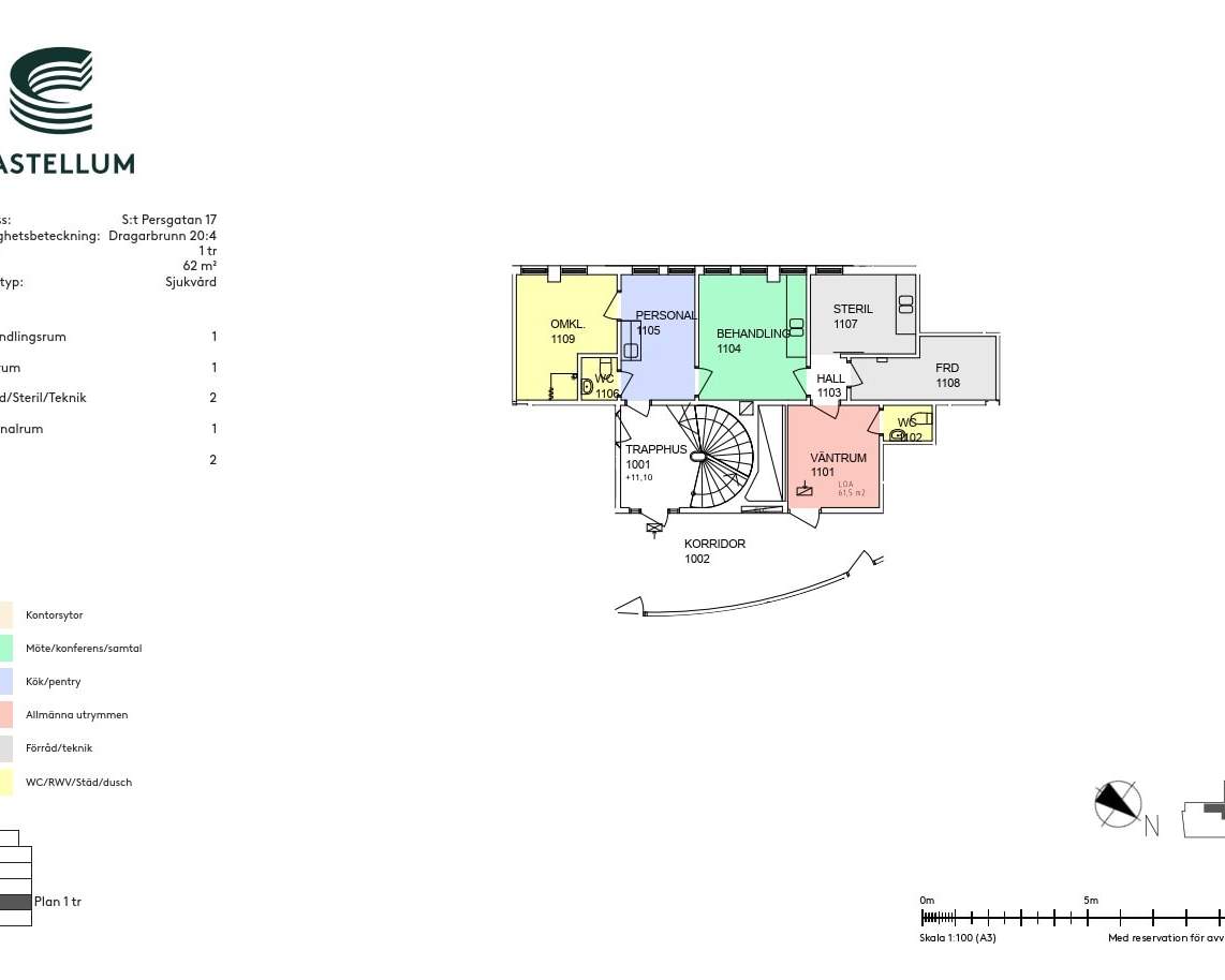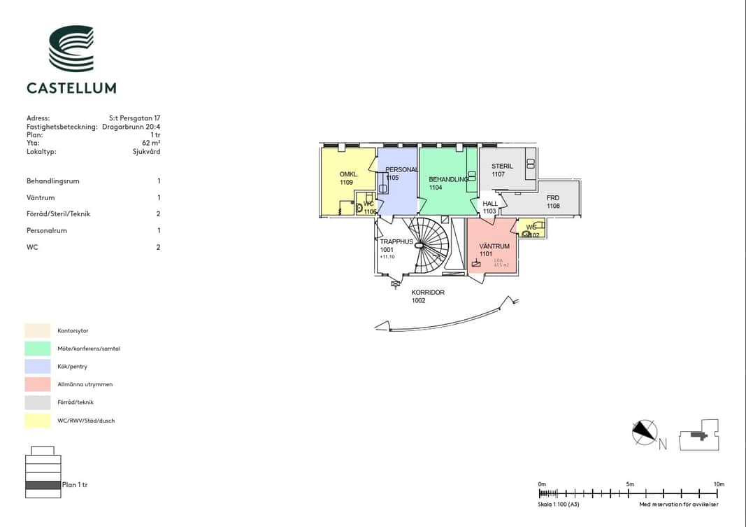 Lokalen är idag anpassad för vårdverksamhet med väntrum, behandlingsrum samt personalutrymmen.
