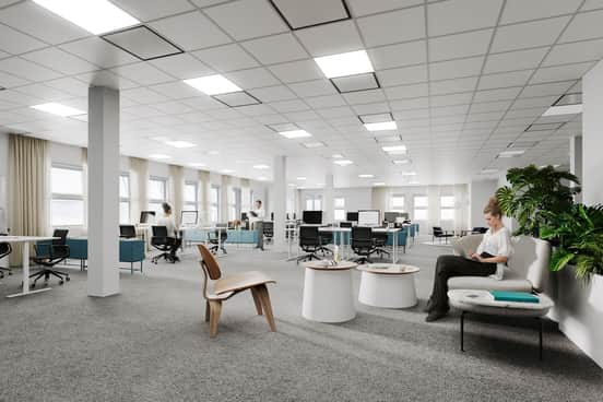 Den öppna och ljusa ytan ger stor potential att skapa en arbetsplats som passar just era behov, oavsett om ni behöver mötesrum, kontorslandskap eller privata arbetsstationer.