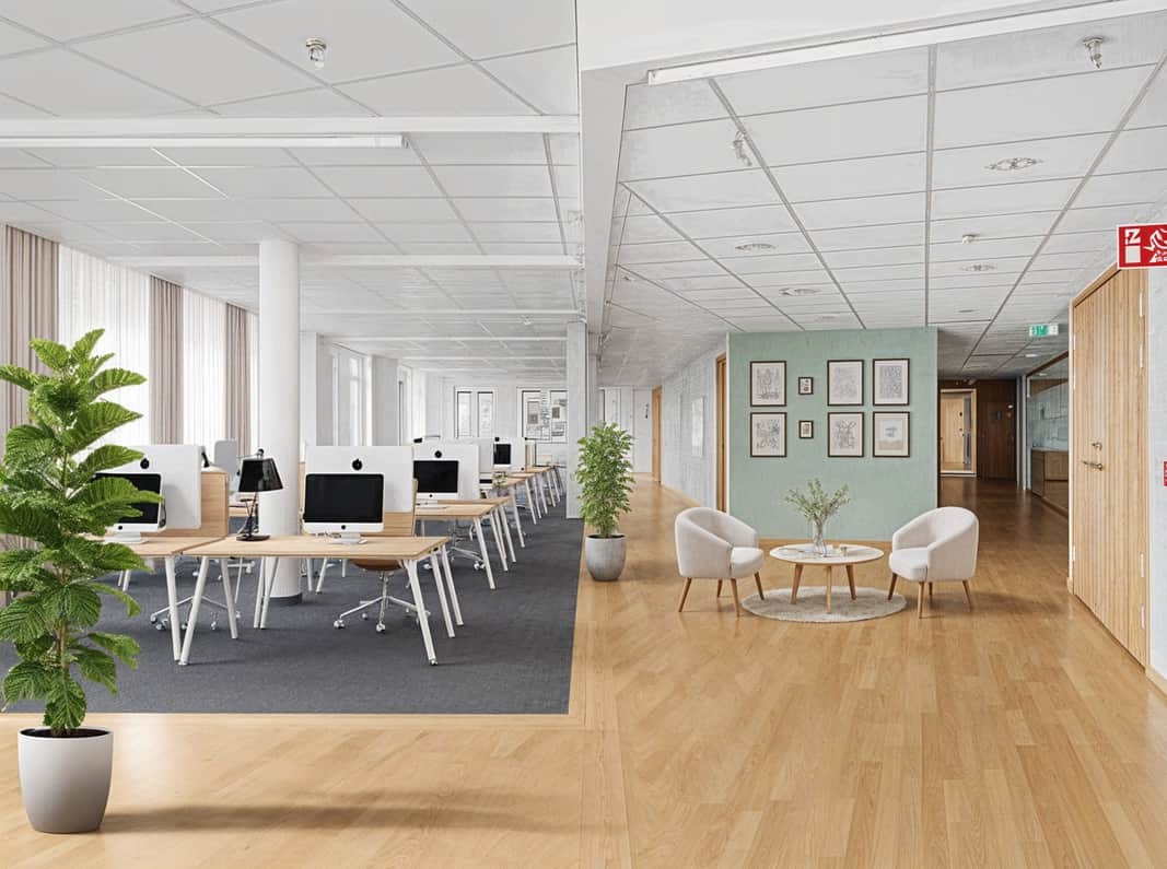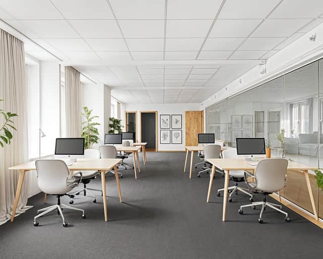 Stora öppna kontorsytor på båda våningsplanen i dagsläget.