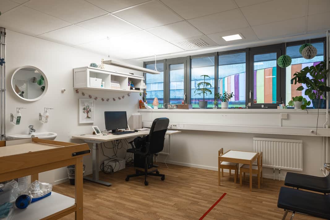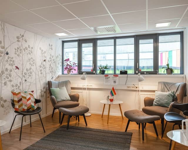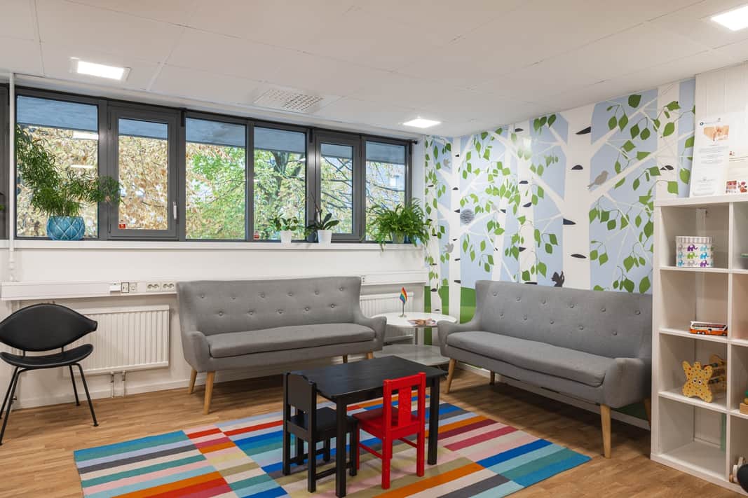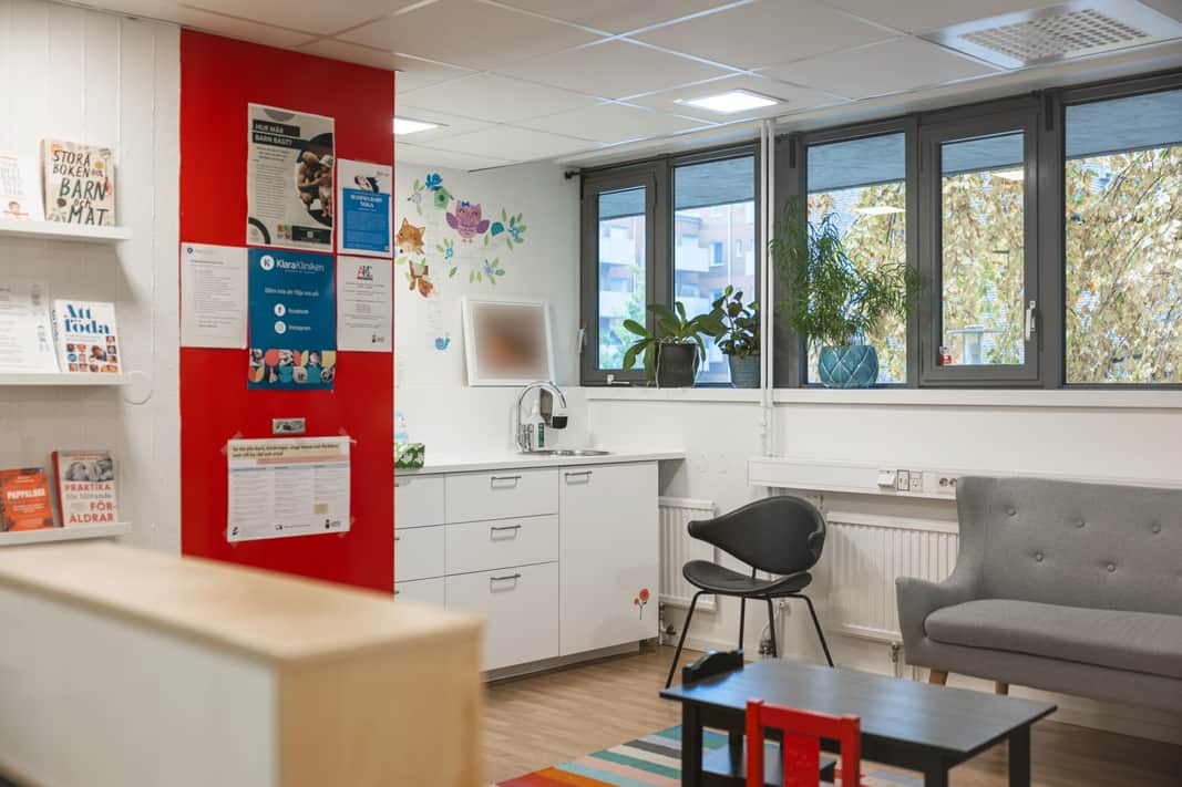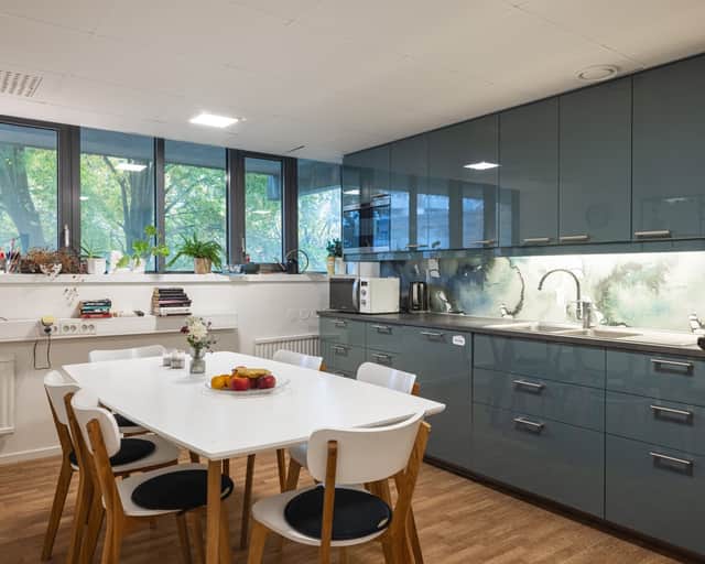 Det hemtrevliga pentryt blir en uppskattad plats för paus och återhämtning under arbetsdagen, och bidrar till en god arbetsmiljö.