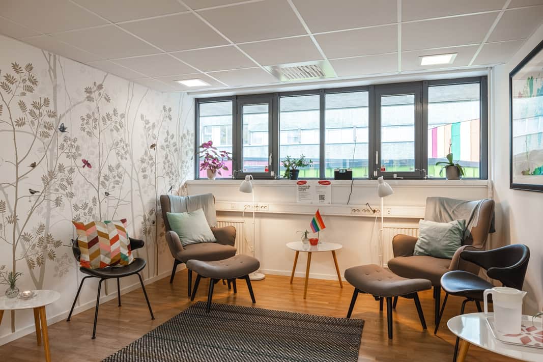 Lokalen har en genomtänkt planlösning med trevliga gemensamma ytor som skapar naturliga mötesplatser för samtal, samarbete och kreativitet.