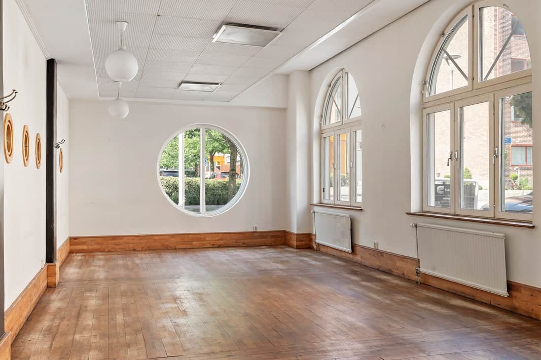 Här finns lokalen för dig som vill etablera en restaurang, showroom eller butik. Trevlig lokal med tilltalande ljusa öppna ytor, stora välvda fönster med spröjs. Parkering finns i anslutning till fastigheten. I närområdet finns både företag och bostäder. Lokalen anpassas för att uppfylla era krav och behov. Vid anpassningar försöker vi alltid ha hållbarhet och återbruk i åtanke.