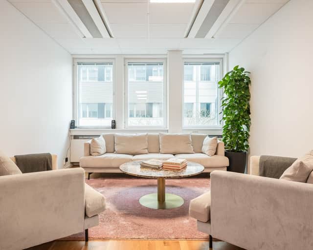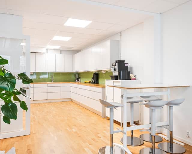 Lokalen erbjuder två mindre kontorsrum, ett generöst mötesrum samt ett öppet landskap. Ytorna är fräscha och trivsamma.