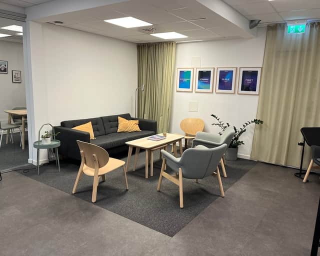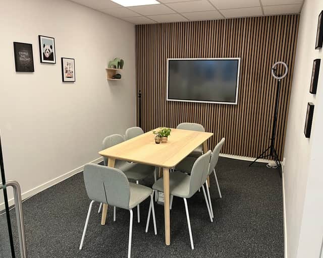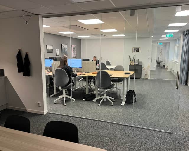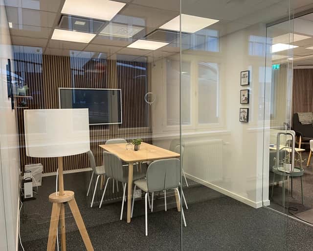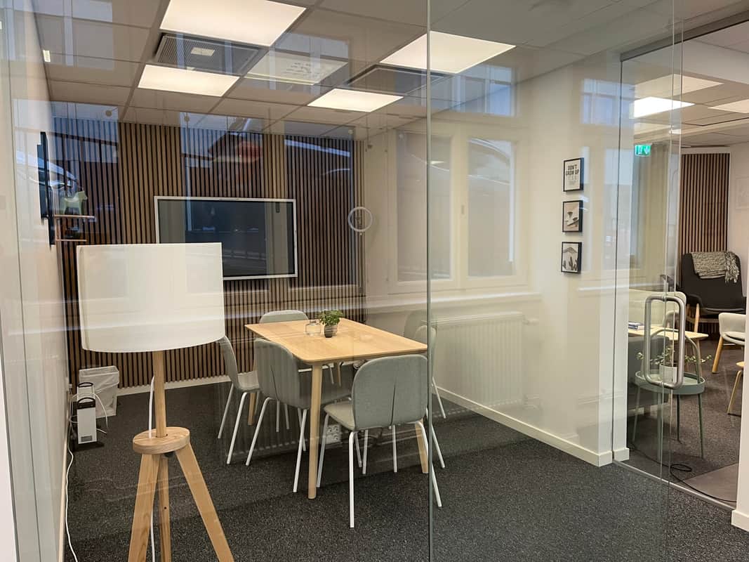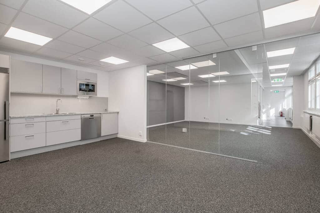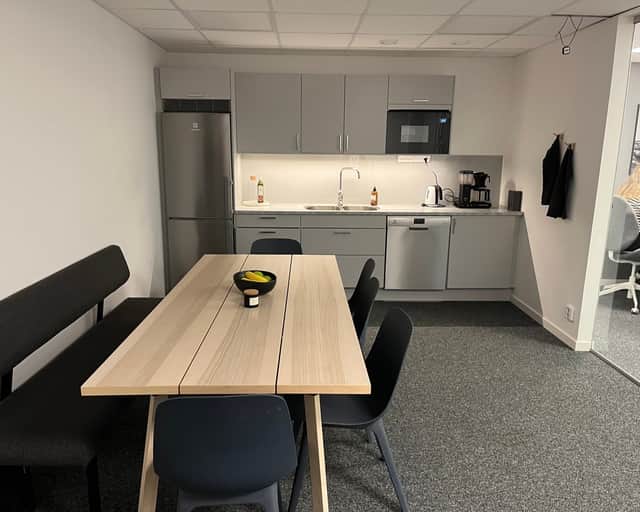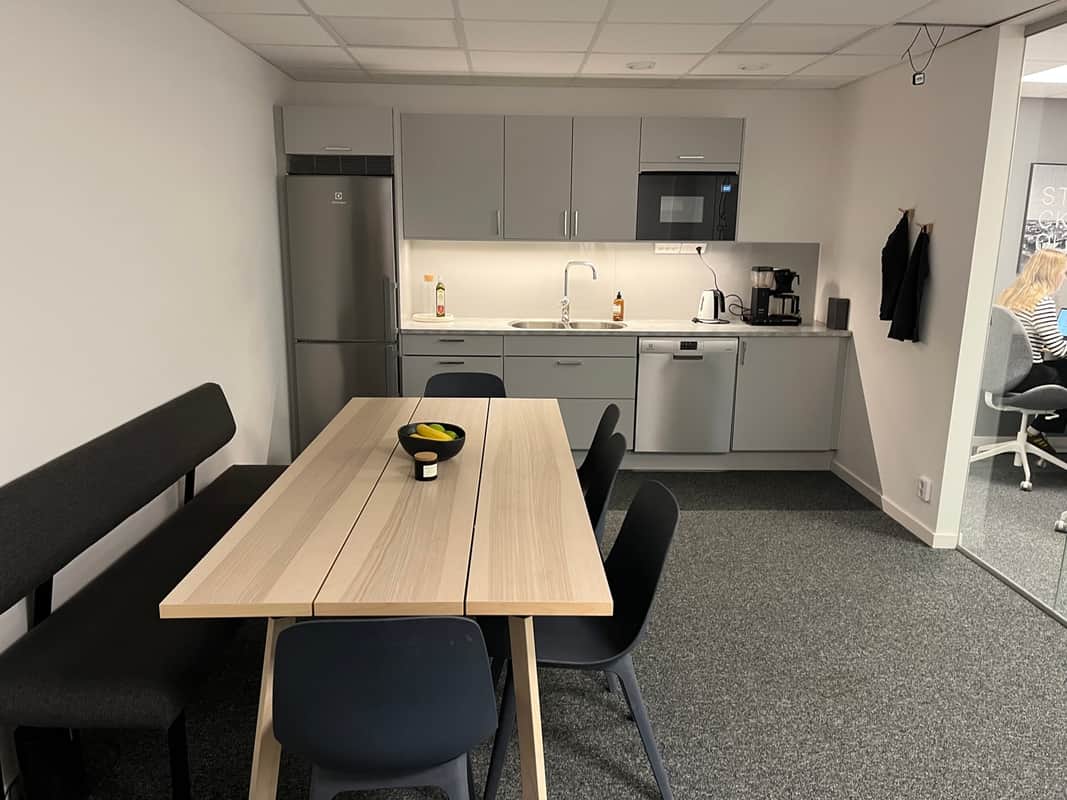 Ljus och fräsch lokal för det mindre företaget. Plats för både kontorslandskap och enskilt arbete finns, likaså sociala ytor.