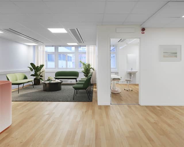 Perfekt för både vårdverksamheter och företag som söker ett kontor med tydlig rumsindelning.