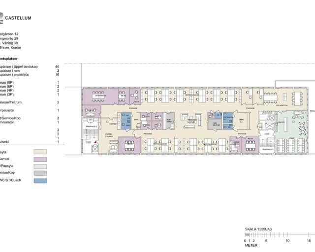 Lokalen har ett öppet kontorslandskap med öppna arbetsytor samt enskilda kontorsrum. Mötesrum i olika storlekar samt en yta för touchdownplatser eller kortare möten. Loungeytor och enskilda samtalsrumfinns även i lokalen samt praktiska ytor som kopieringrum och förråd.
