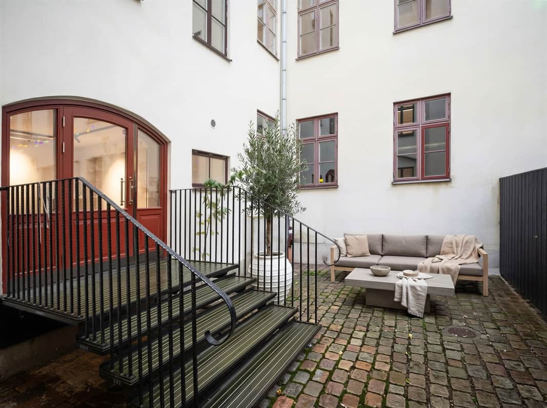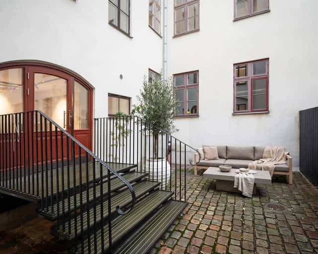 Lokalen erbjuder en egen innergård som kan nyttjas av hyresgästen – en uppskattad plats för pauser, informella möten eller en stunds avkoppling under arbetsdagen.
