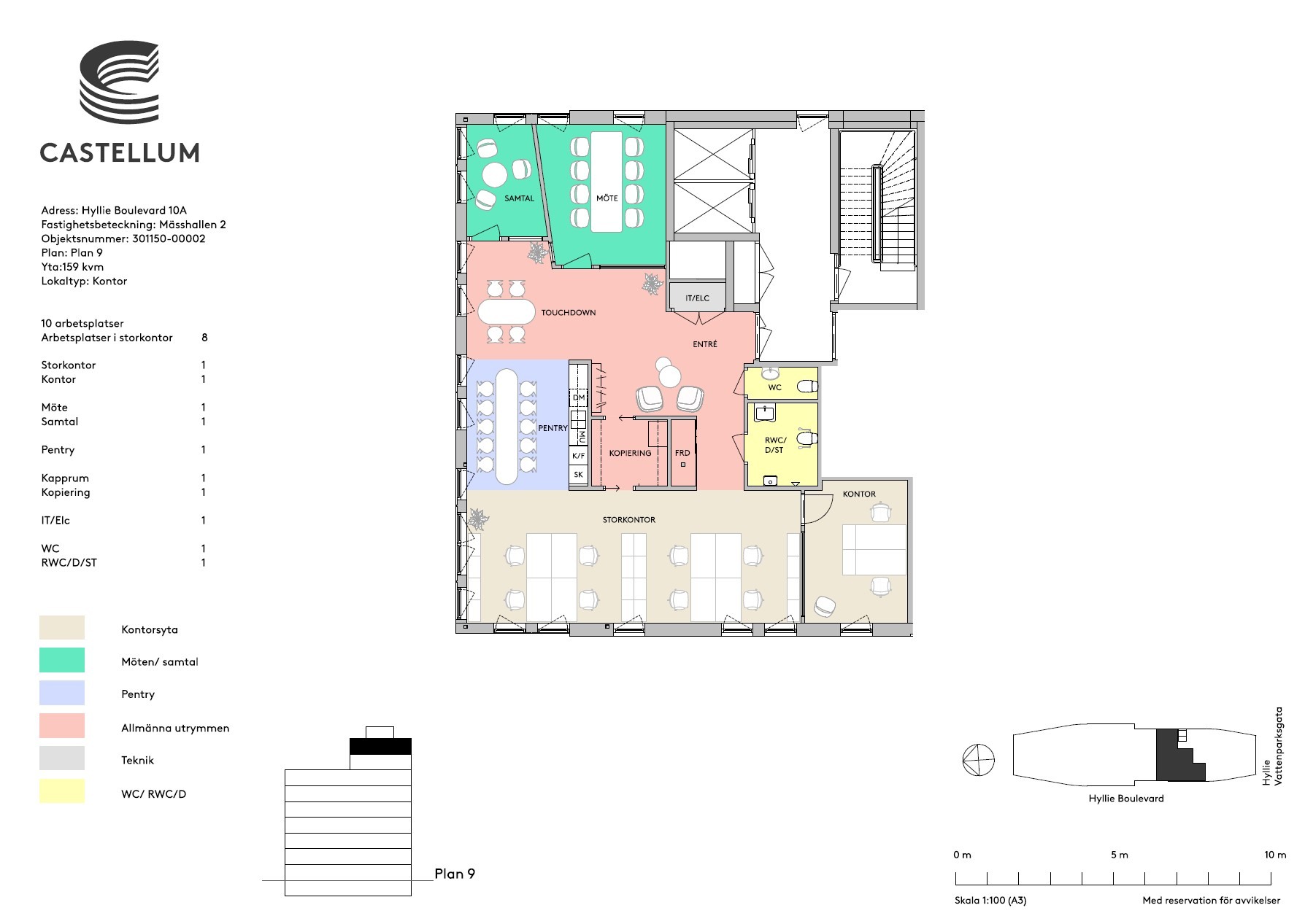 Nu finns möjlighet att hyra ett ljust och välplanerat kontor om 158 kvadratmeter högst upp i fastigheten på Hyllie Boulevard 10 A–B. Lokalen ligger på plan 8 och erbjuder en fantastisk utsikt över staden samt tillgång till en generös gemensam terrass – perfekt för kreativa pauser eller informella möten under bar himmel.