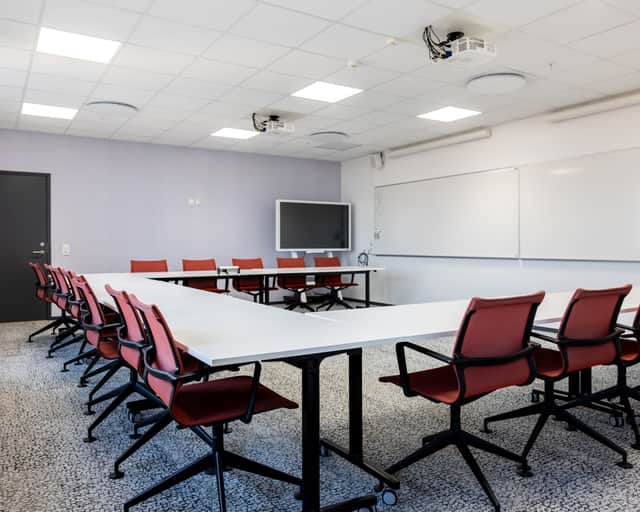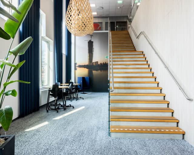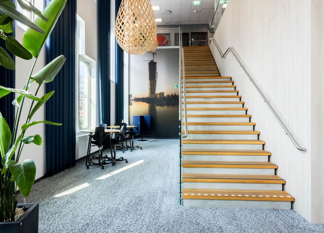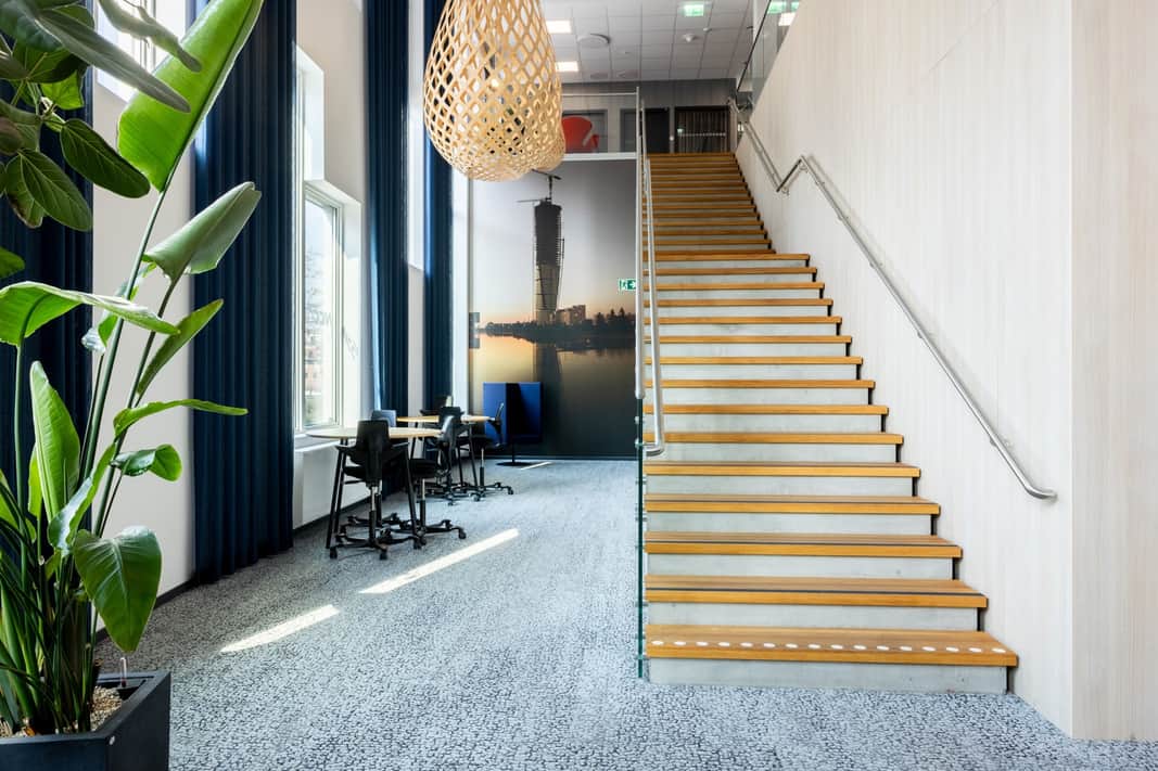 Varje våningsplan är genomtänkt och inbjudande – här finns plats för både koncentration och kreativitet.